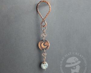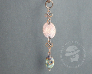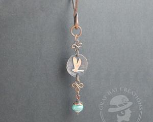 White Cats Eye Glass Pendant in Copper and Fine Silver