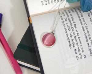 Bubble Gum Pink Cat’s Eye Glass Pendant on Sterling Chain