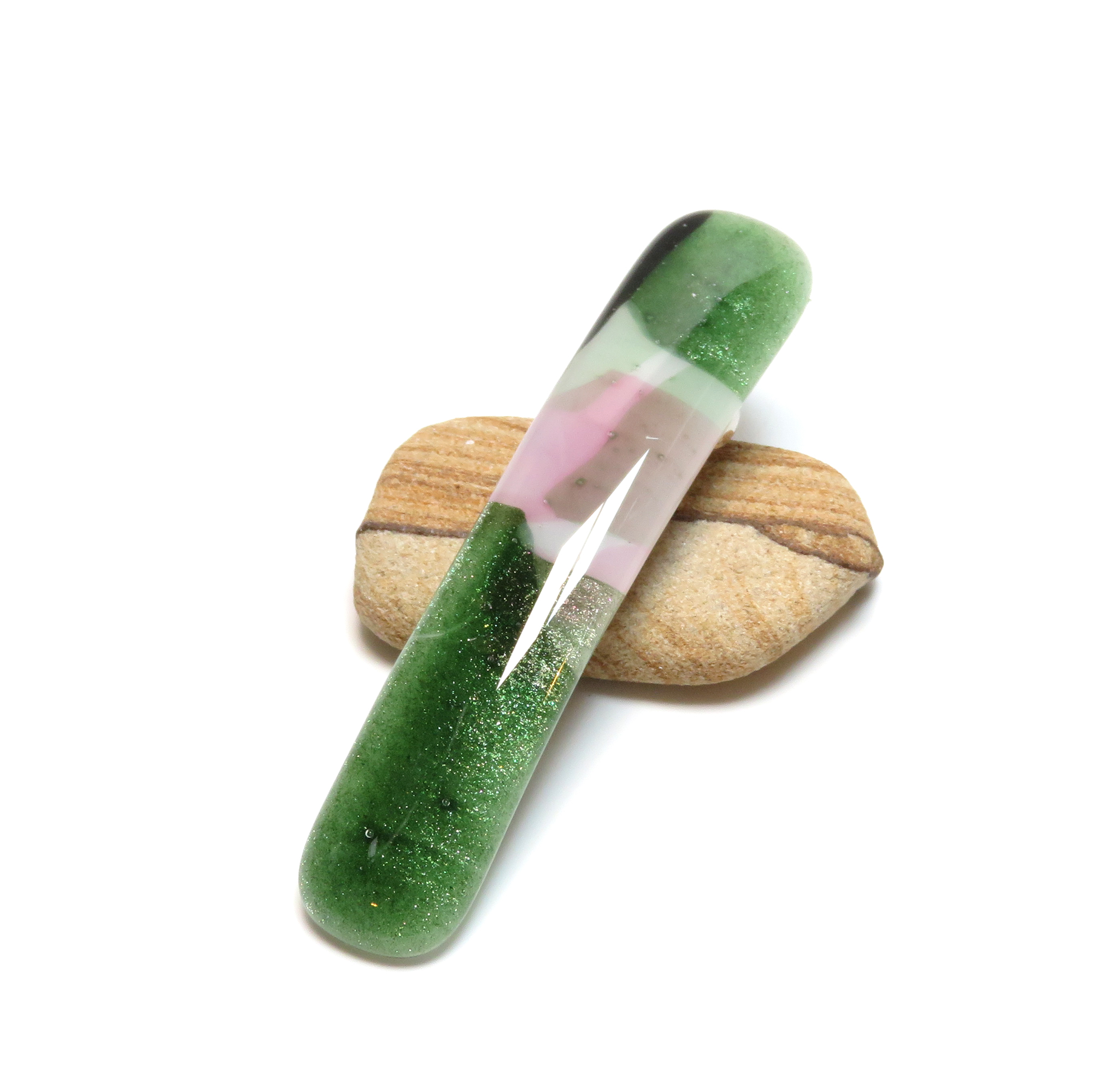 Add a soft, nature-inspired touch to your hairstyle with this handmade fused glass barrette, sized perfectly for fine or thin hair. This 3-inch barrette is kiln-fired into a smooth, glossy, one-of-a-kind piece.
