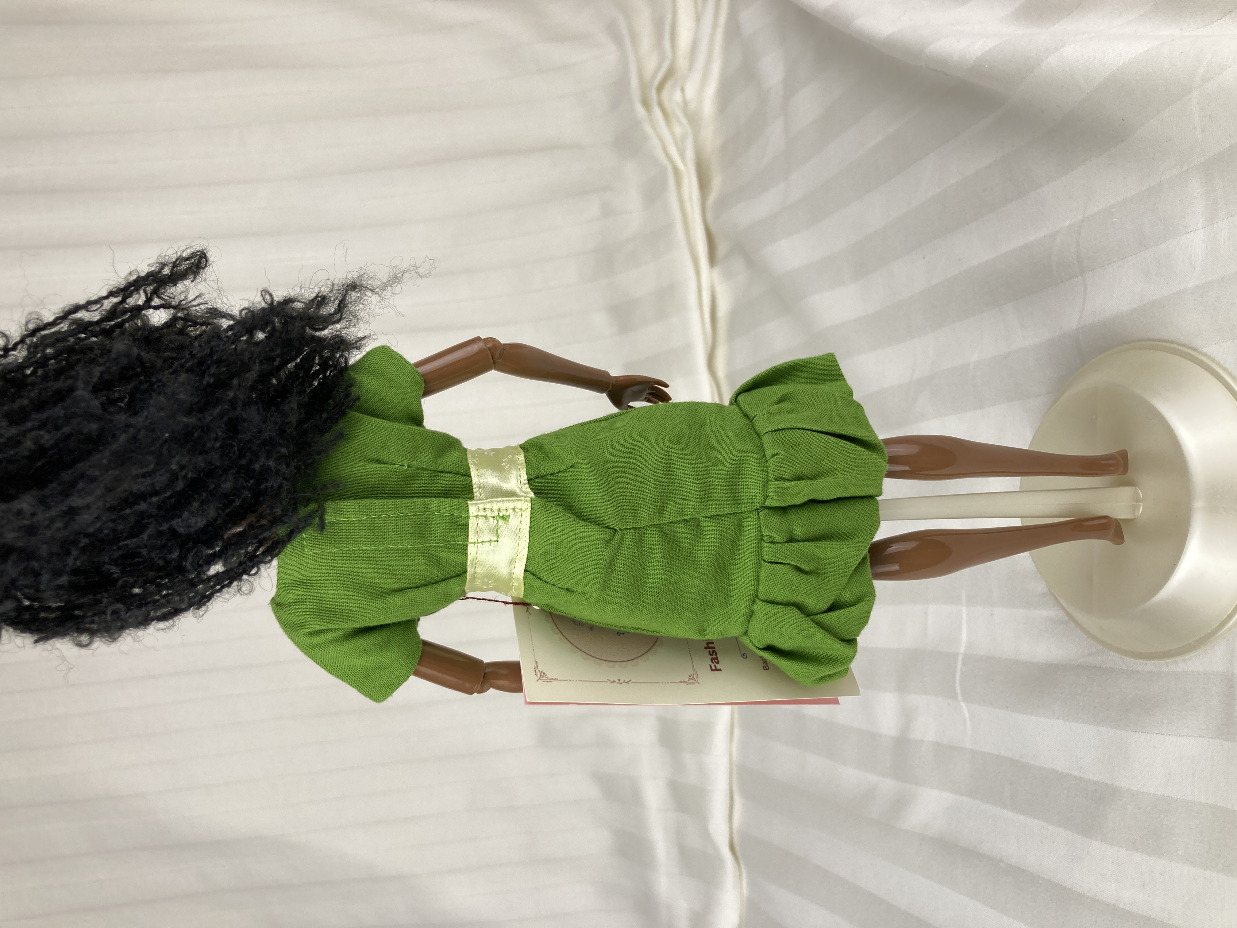 All our dresses are handmade by us using quality materials, and old fashioned industry, labor, and skill. ALL our fashion doll clothes have lined bodices unless specified and ALL our fashion doll clothes have finished seams either by multiple zigzagging or by enclosure; depending on the fabric and dress style, the skirts of our doll dresses are also often lined or have an attached petticoat (see individual listings). We strive to create fashion doll clothes that are so realistic and beautiful that our customers wish they themselves could wear the dress and yet durable enough that they become a family heirloom handed down to future generations. A Yankee Doodle Darlings fashion doll dress is designed to fit like a glove yet be easy to put on and take off. We try to sewn on all the little details such as buttons, beads, and trims for durability but at times must use a durable glue (see individual listings).