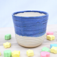 Pottery started as a hobby in a community studio and quickly grew into something I can’t imagine being without. These days, I split my time between that shared space and a cozy little home setup, always chasing new ideas. I love pulling together all my different interests—bright colors, painterly drips, screenprinted details, and even tiny animal sculptures—into pieces that feel playful and one-of-a-kind.