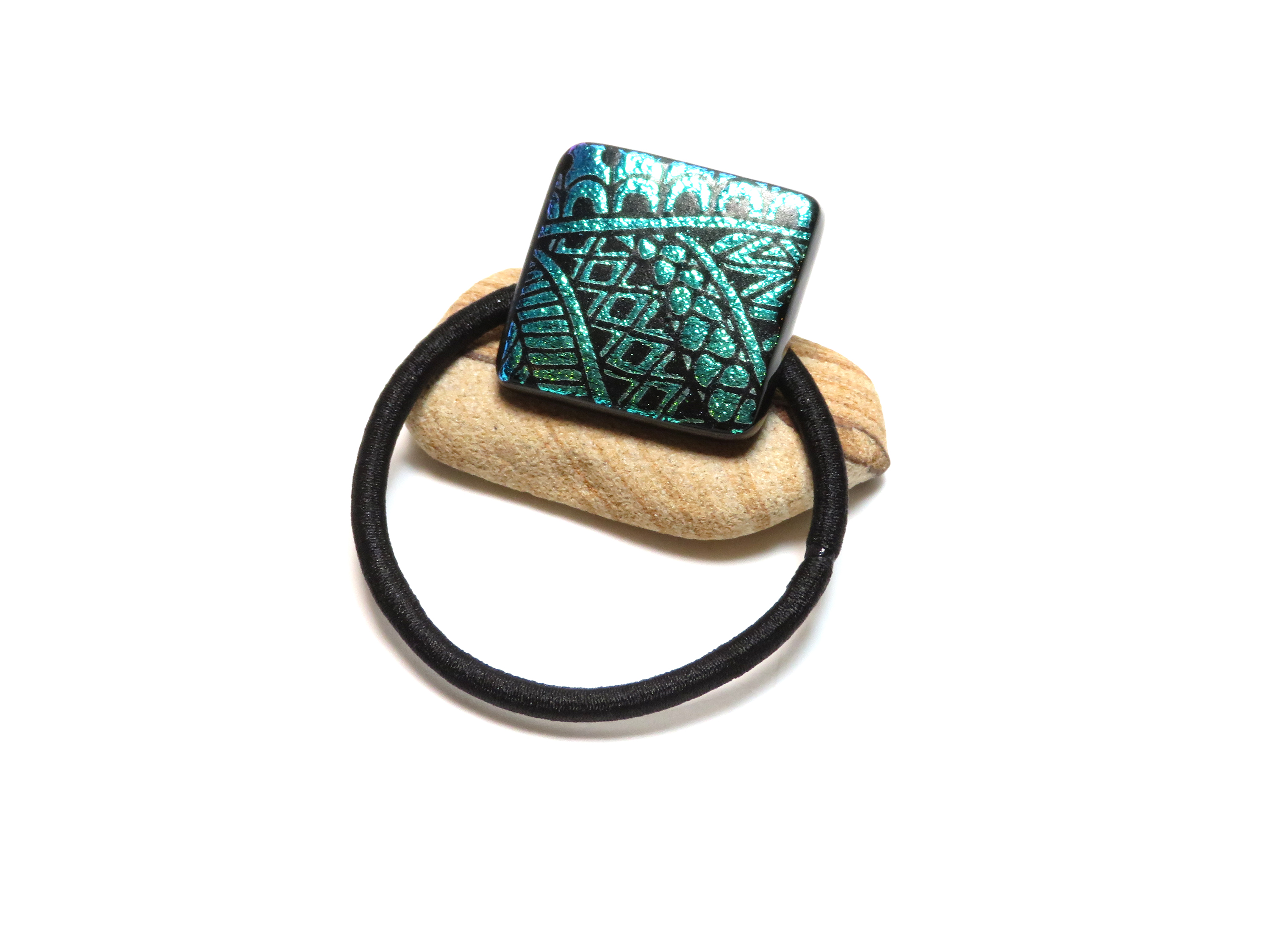Handcrafted dichroic glass ponytail holder