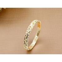 This bangle bracelet features a beautiful green jade agate bead on tarnish resistant gold straight wire. Very comfortable and light weight while sturdy enough to hold its shape. The band is approximately 2mm in width. The straight hammered design gives this bracelet a beautiful dimension and shine. Shells are approximately 9-10 mm in size. This is gold plated jewelry, not gold filled or solid gold. Perfect bracelet for stacking bracelets.
