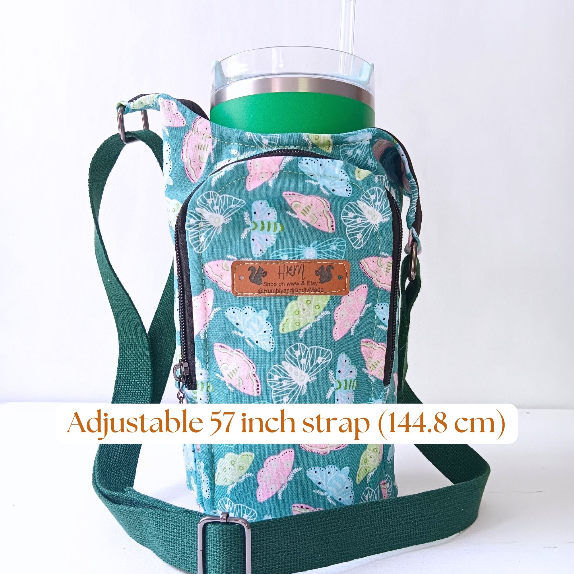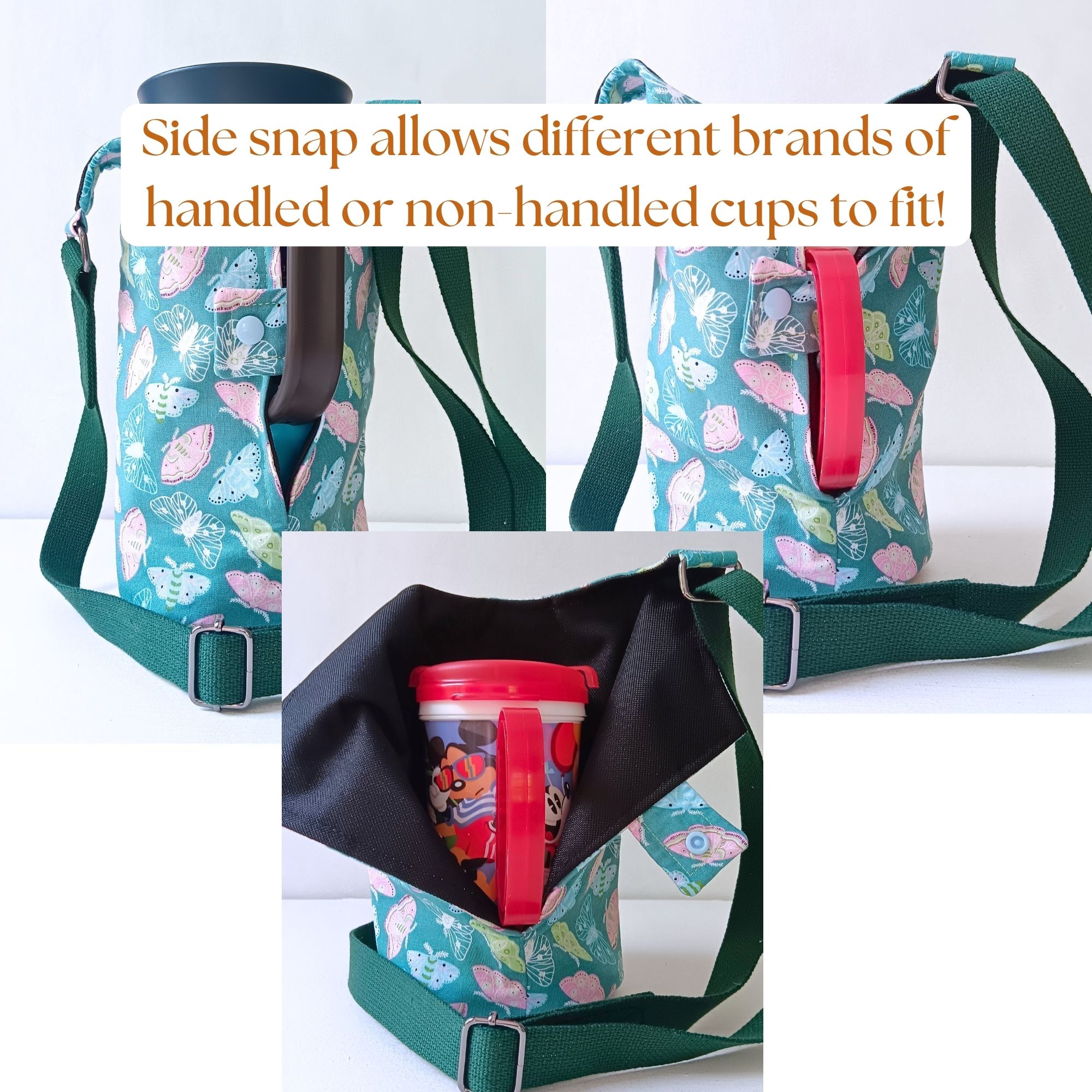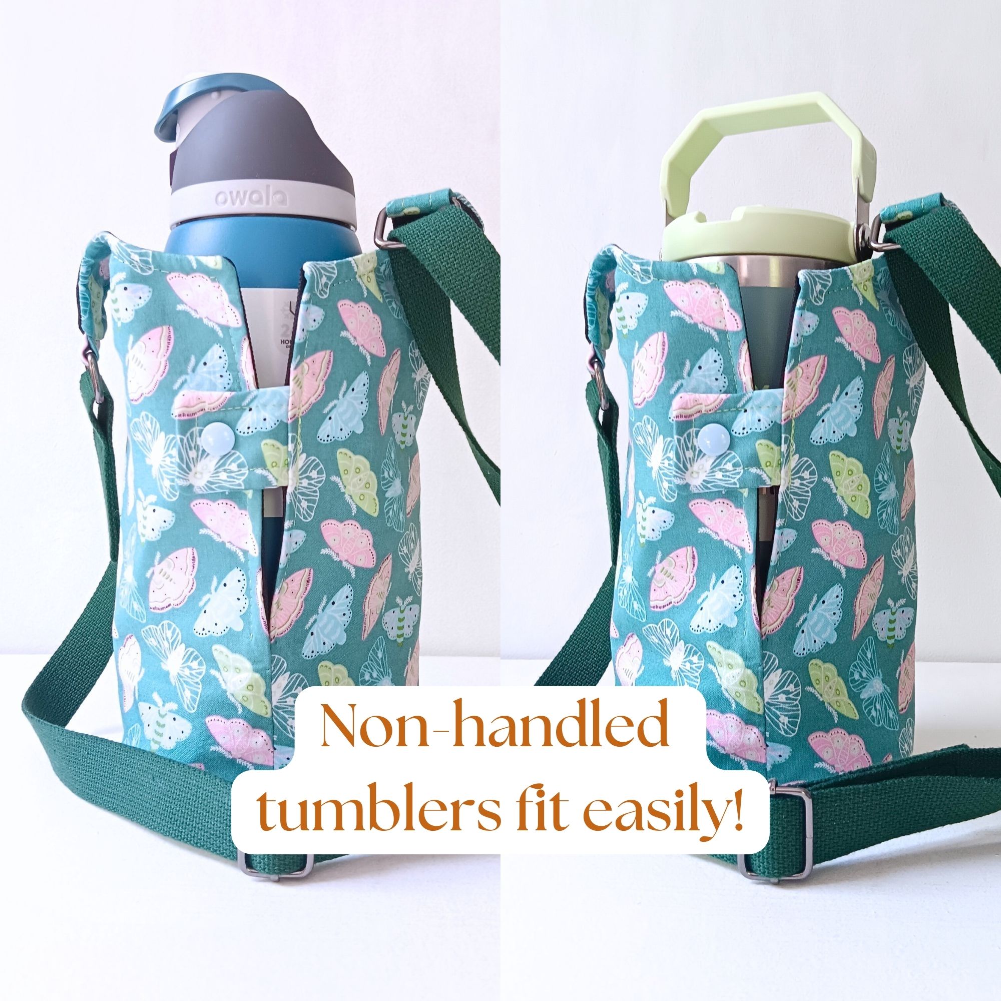 Easily carry your tumbler and essentials in this thoughtfully designed crossbody bag! Perfect for errands, walks, travel, or everyday use. Works with both handled and non-handled tumblers up to 40 oz.