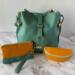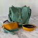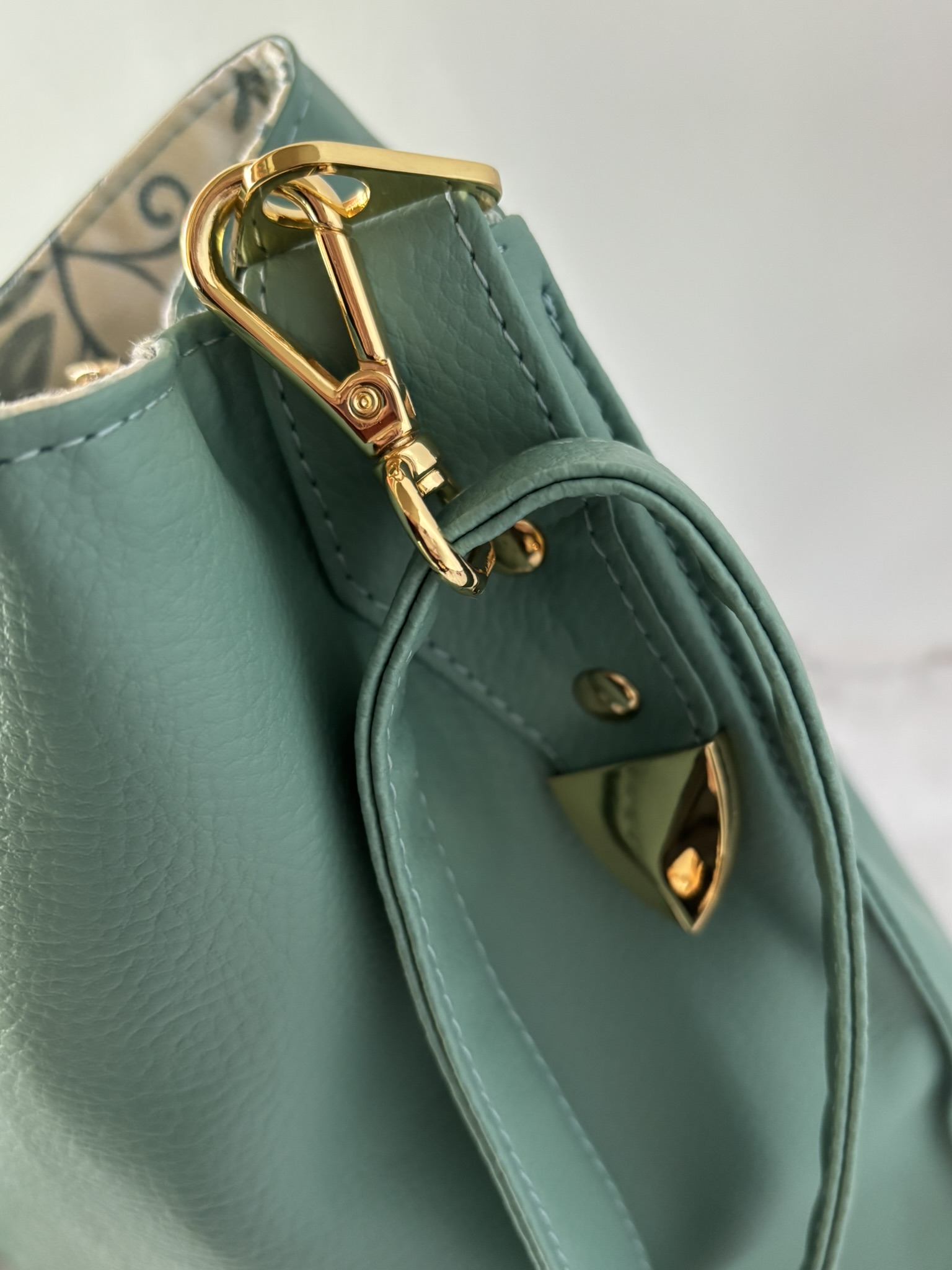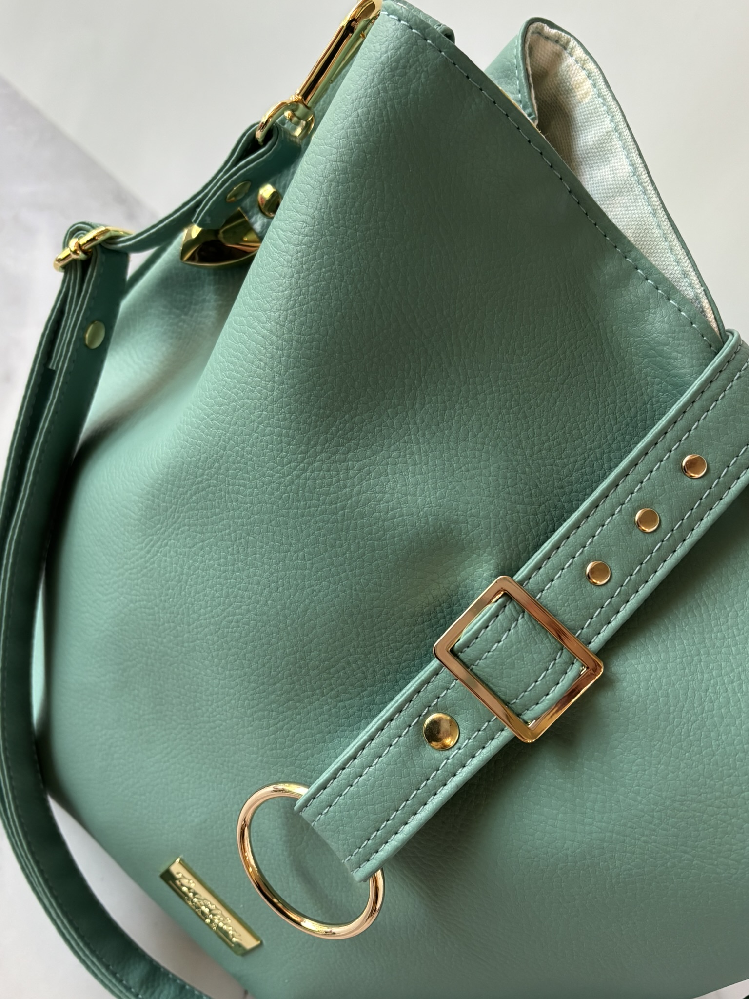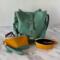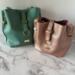 I honestly don't know anyone who wouldn't love this set. The pastel wintergreen semi-slouch handbag is the definition of effortless charm—soft, roomy, and it also is structured enough to stand on its own. It has that bucket/hobo slouchy bag feel, while keeping some structure due to the interior construction. Aside from being the perfect size, it can be carried as a handbag, shoulder bag or a cross-body. The interior is very unique -- with a very large, deep zippered pocket, with two large slip pockets on each side.