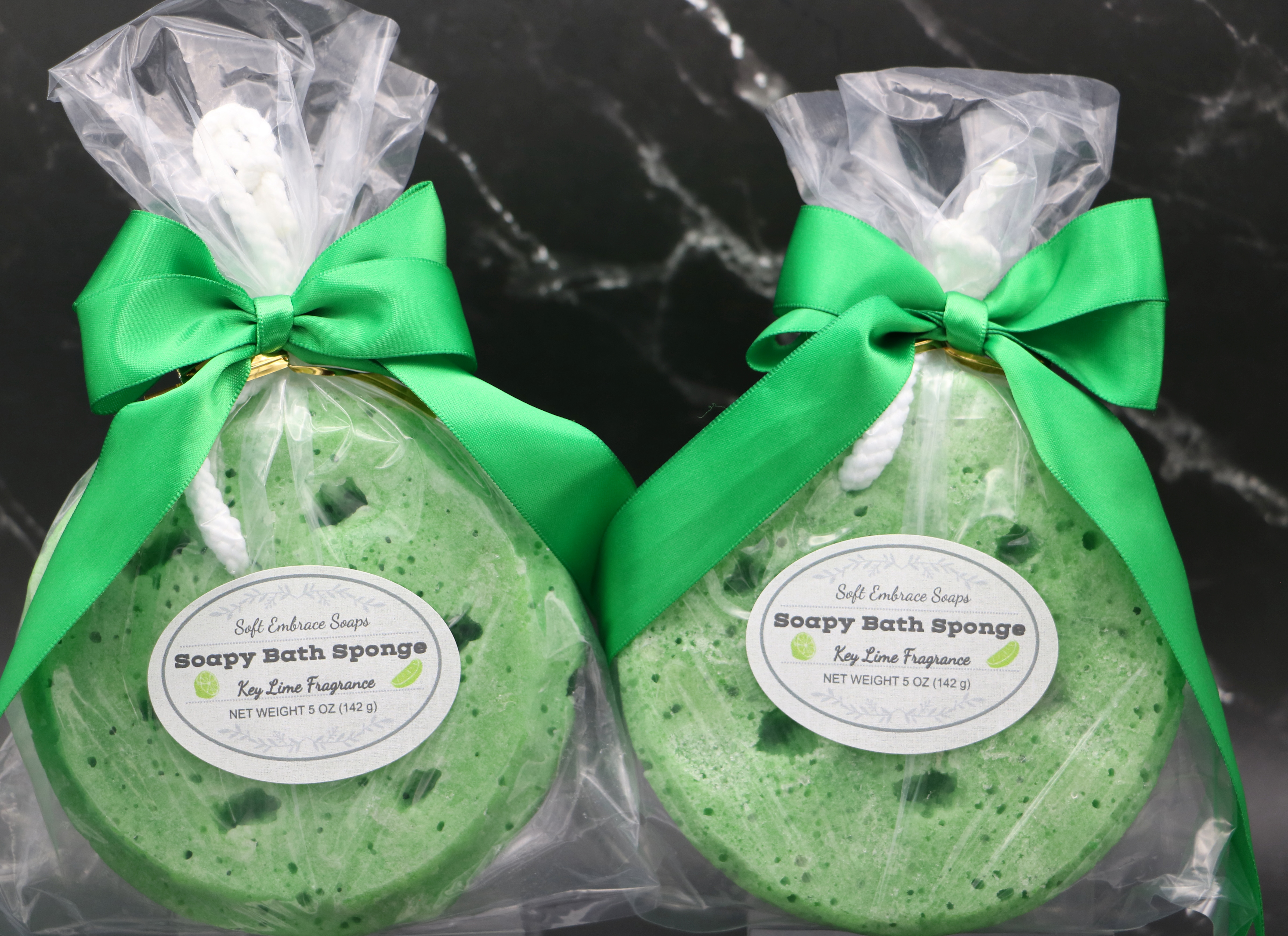 This plush bath sponge is scented with delicious Key Lime fragrance oil. The top notes are lemon verbena & lime peel with mid notes of grapefruit & coconut water followed by vanilla. Soapy Bath Sponges envelop your skin in a rich, foam-filled lather that feels silky smooth & luxuriously soft, while the aromatic notes of the scented oils awaken your senses & elevate your bathing ritual.