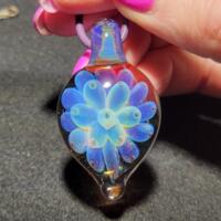 My artistic journey also leads to the creation of stunning implosion pendants. Each of these pieces is meticulously crafted using only the finest quality Borosilicate glass and my blowtorch. I take immense pride in the depth and intricacy of these pendants, each one reminiscent of delicate lotus blossoms, succulents, or anemones painstakingly captured in glass.