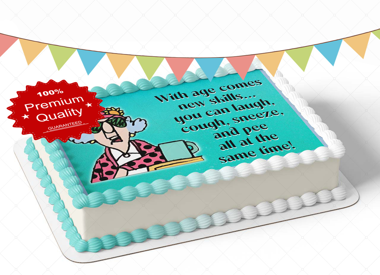 Grumpy Old Lady Sneeze Pee With Age Funny Edible Image Themed Edible Birthday Party Cake Topper Sheet Edible Sticker Decal