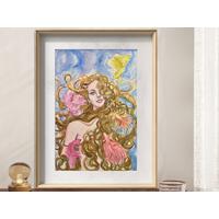 Painted by hand with the highest quality artist materials, this piece is archival, meaning it will not fade or decay under normal display conditions . This is a real painting ( not a print) and comes unframed but ships for free. ( Frames can be found easily online or at your local art and craft store) . Materials include thick 100% cotton watercolor paper, artist quality watercolor paints such as Winsor and Newton, Sennelier, Daniel Smith.