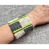 My Design Process: I love playing with color so I always start a new weaving project with color inspiration. I mix and match colors from my yarn stash until I find a combination of colors and textures that excites me. Next, I draft a new bracelet or wall hanging pattern in Adobe Illustrator. The weaving design or pattern is often determined by the color relationships I want to highlight. I love to mix muted tones and rich dark shades with saturated hues. I arrange the colors so each color dynamically contrasts or harmoniously blends with neighboring colors.