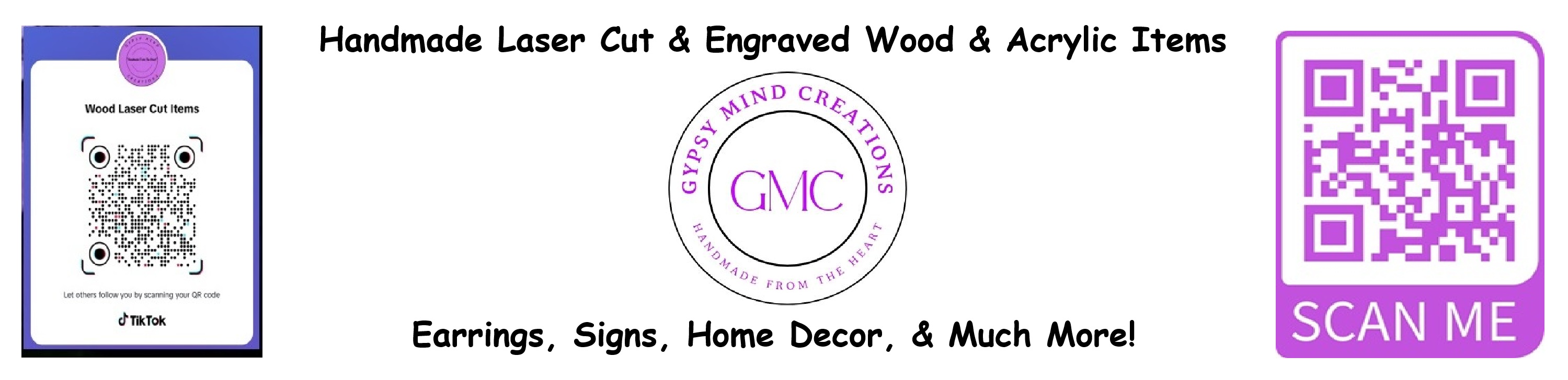 Welcome to Gypsy Mind Creations where you will find handmade laser cut/engraved wood and acrylic earrings, signs, home decor, and much more! I sell on here as well as several other online platforms. You can find them on my Linktree page: https://linktr.ee/gypsymindcreationsI also take custom orders contact me for more info or if you're interested! Also please note my items come from a smoke free but NOT pet free home.FREE SHIPPING on most items with USPS Ground Advantage.