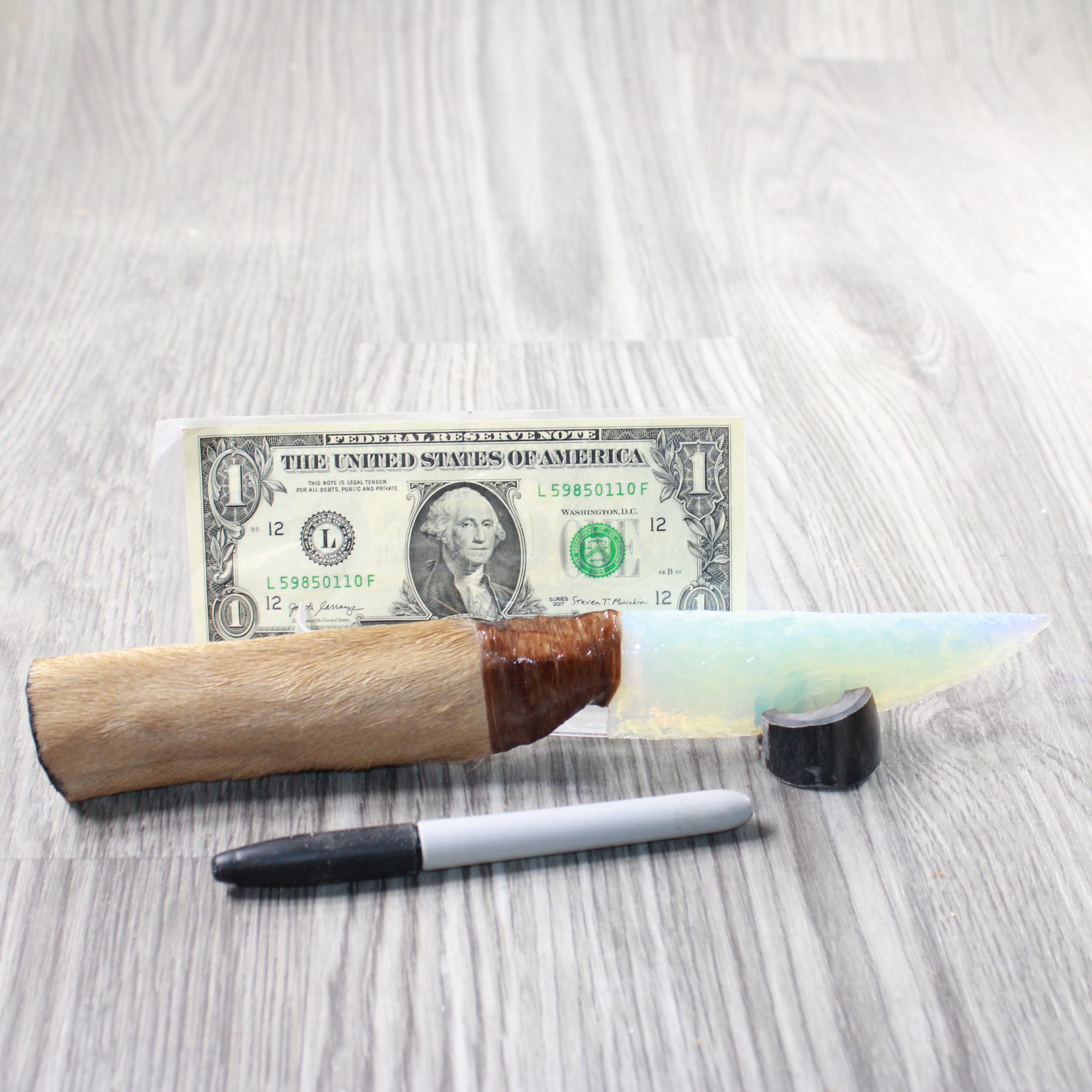 Ornamental knife with an opalite blade.