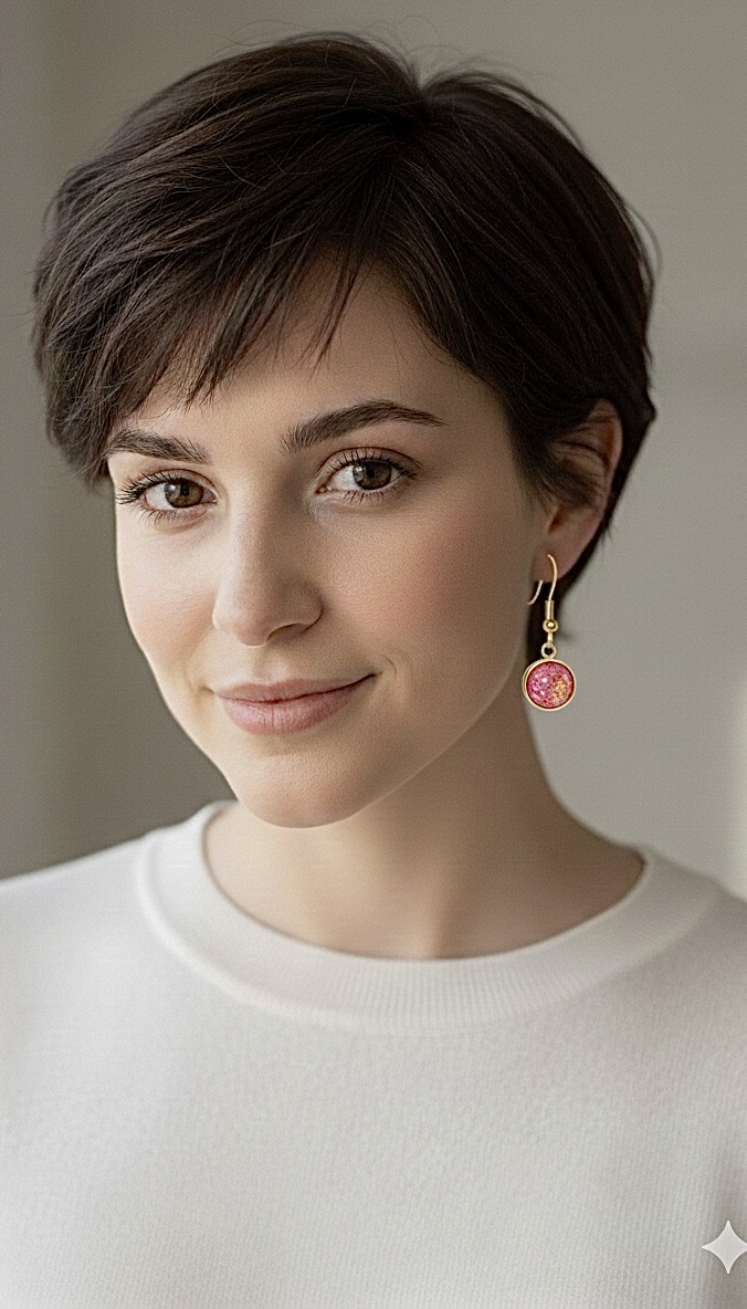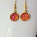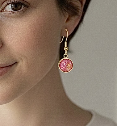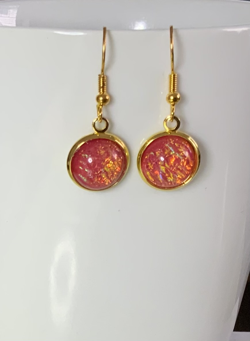 Both lightweight and striking, these earrings are the perfect accessory for those who love jewelry that catches the light from every angle. The bright gold finish of the bezel and fishhook wires provides a warm contrast to the cool, shifting tones of the red centers, making them a versatile addition to any jewelry collection.