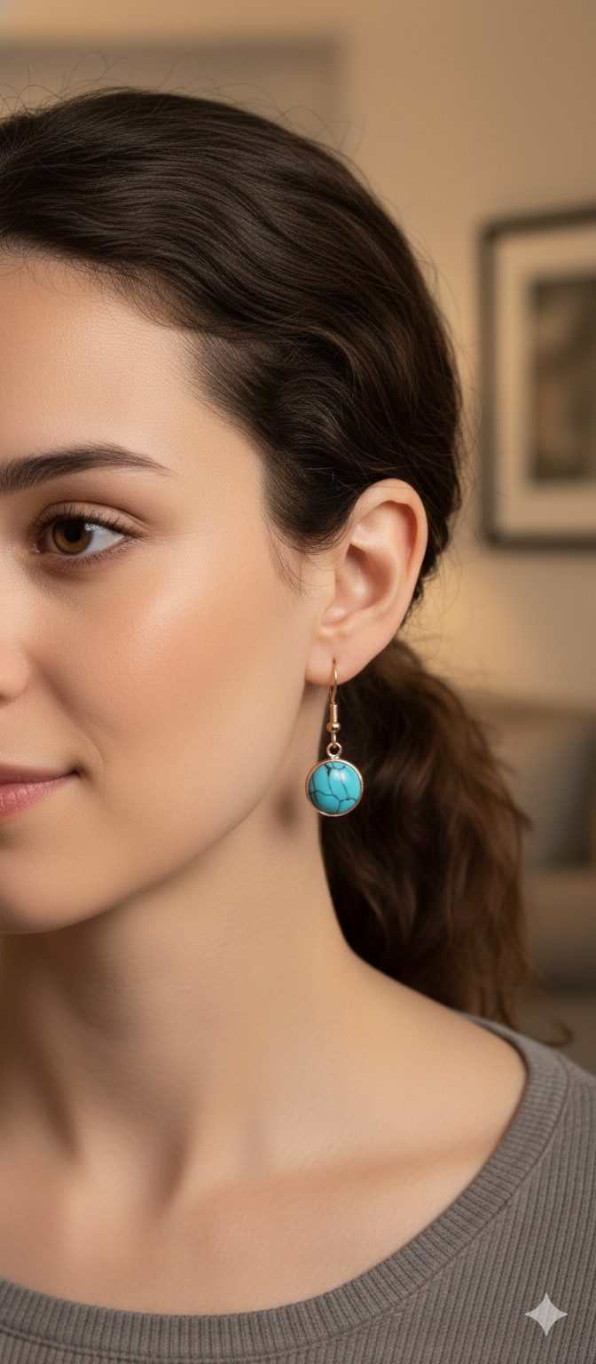 Imitation turquoise cabochon stone earrings look good with anything!