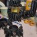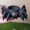 The spiders are made with epoxy resin that I dyed black and poured into a mold. I hand paint the fire red eyes and the nails are painted a black that has a gold hue.