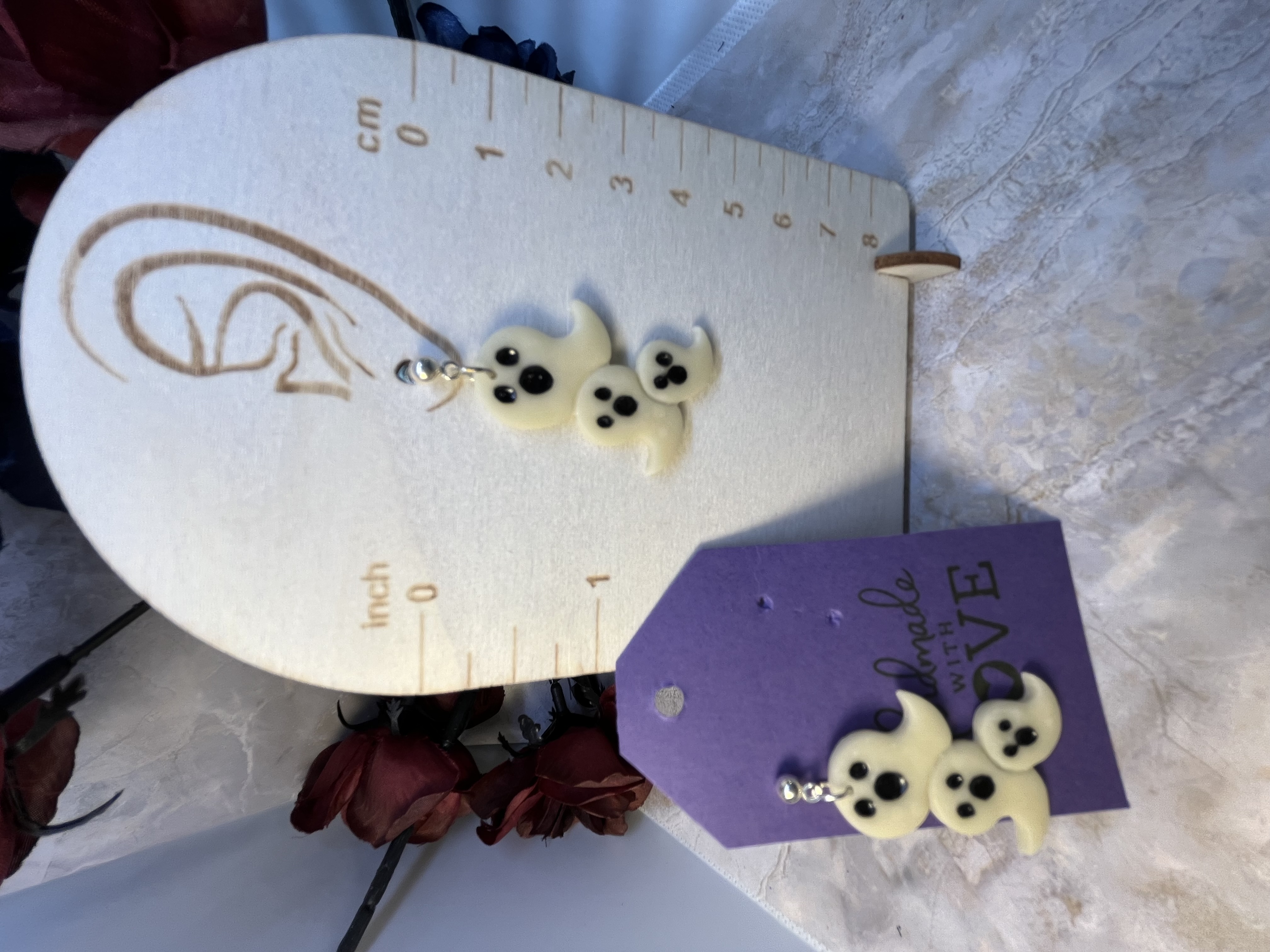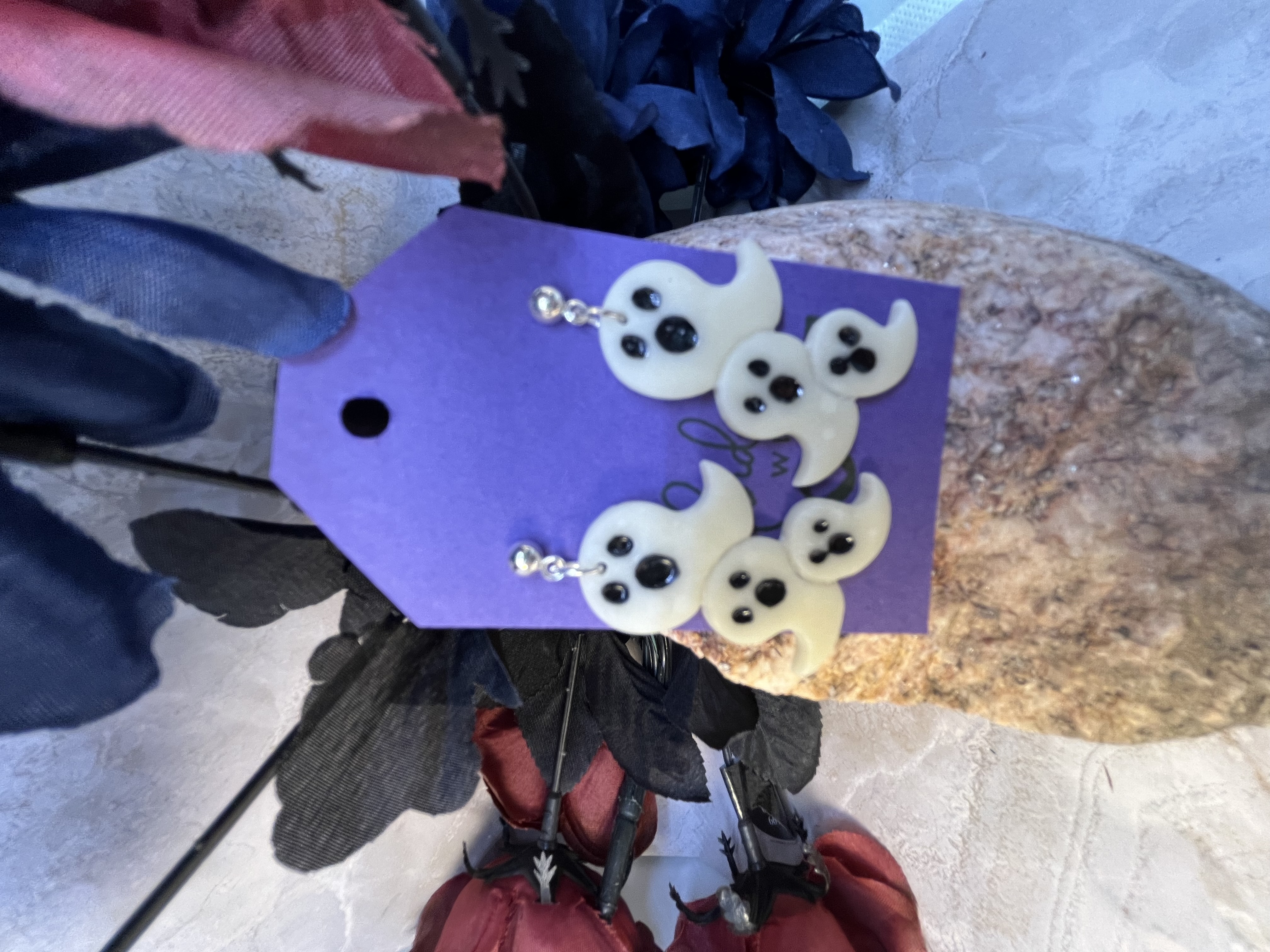 Halloween Glow in the dark three Ghost Polymer Clay Earrings