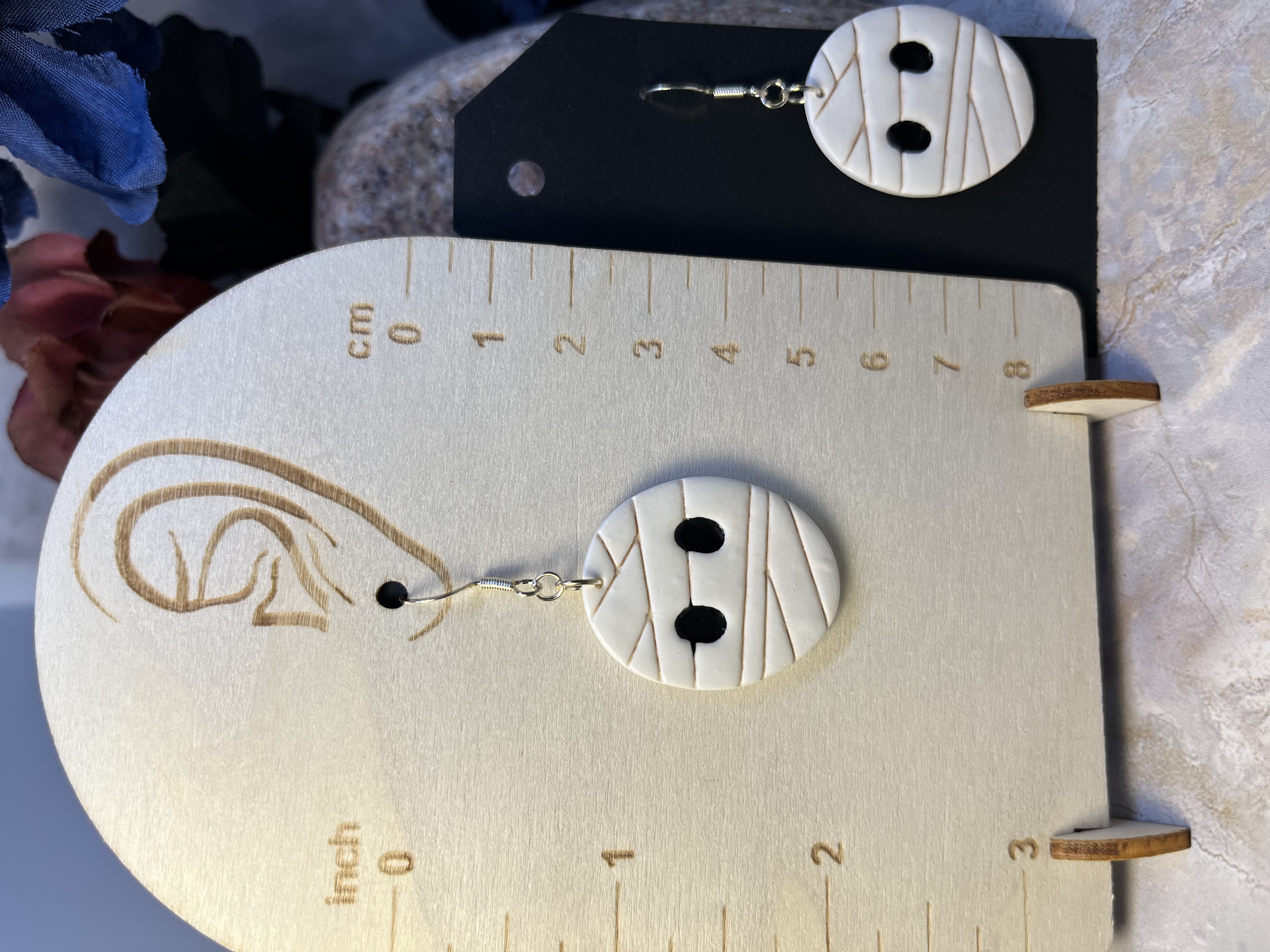 Please keep in mind all items are handmade and therefor small inconsistencies may occur. Some examples of these may include very small bubbles, slight variances of color, or other small that in no way affect the functionally of an item.Each pair of polymer clay earrings is finished with silver plated/ nickel free and just nickel free posts or hooks . Enjoy wearing a beautiful statement piece that is so comfortable and lightweight.Our shop also offers handmade scrunchies in various size and fabrics.