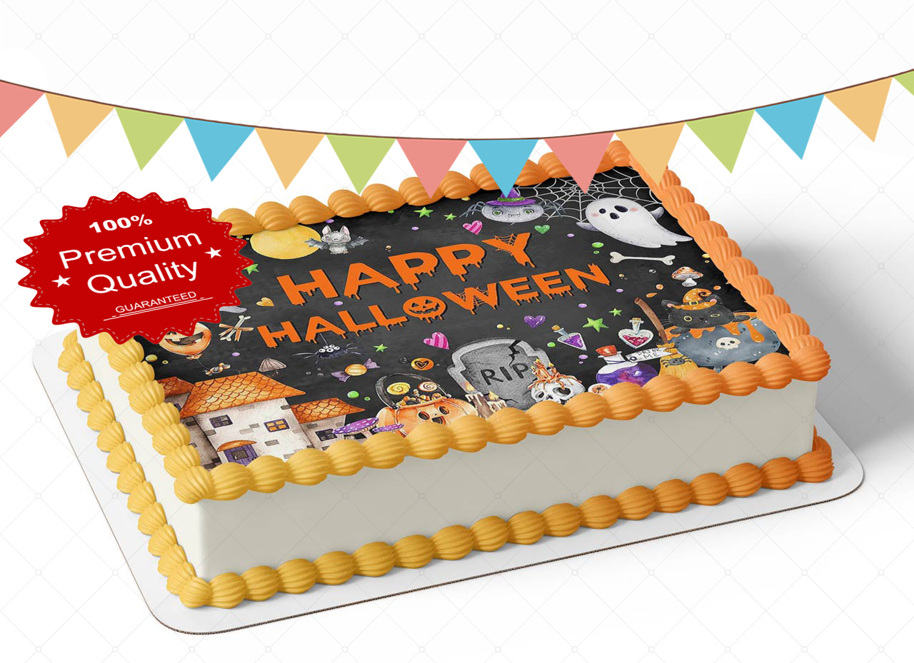 Halloween Night Horror Pumpkin Ghost Town TrickorTreat Edible Image Themed Edible Birthday Party Cake Topper Sheet Edible Sticker Decal