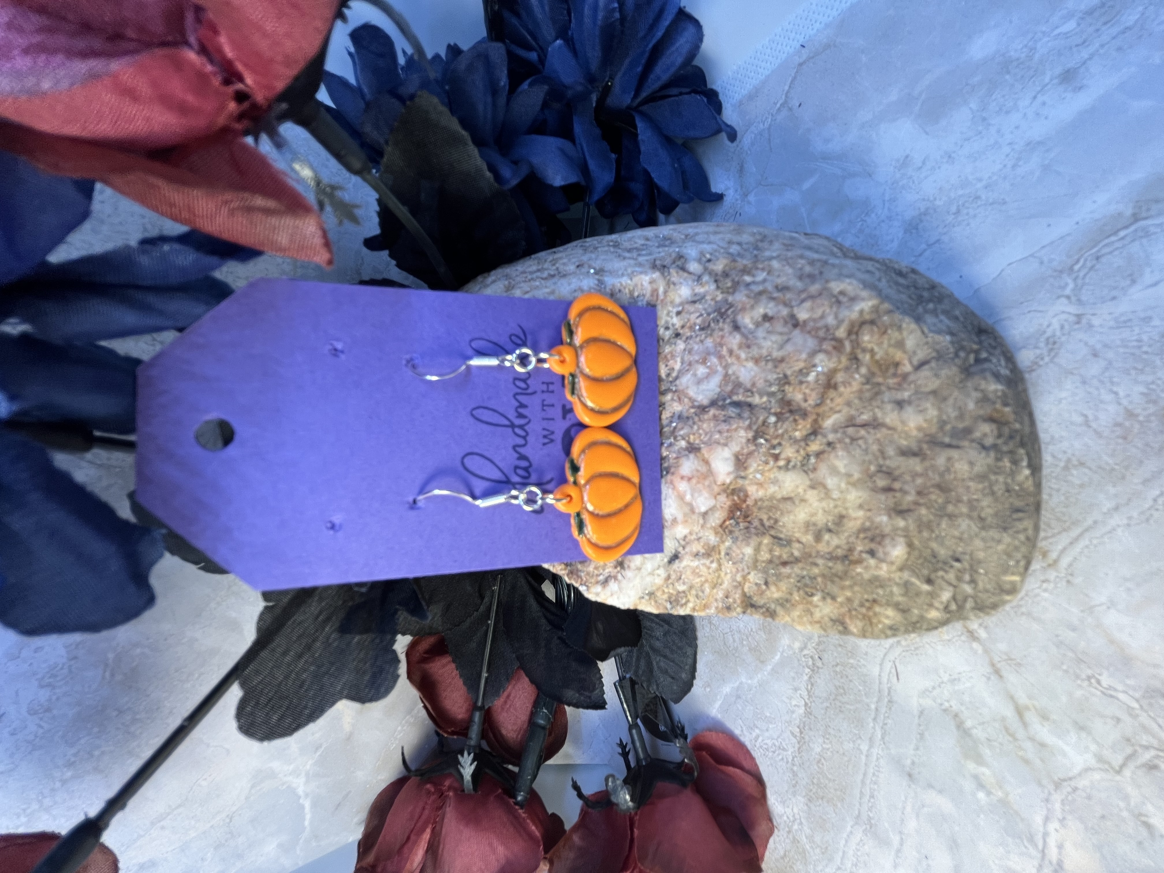 Please keep in mind all items are handmade and therefor small inconsistencies may occur. Some examples of these may include very small bubbles, slight variances of color, or other small that in no way affect the functionally of an item.Each pair of polymer clay earrings is finished with silver plated/ nickel free and just nickel free posts or hooks . Enjoy wearing a beautiful statement piece that is so comfortable and lightweight.Our shop also offers handmade scrunchies in various size and fabrics.