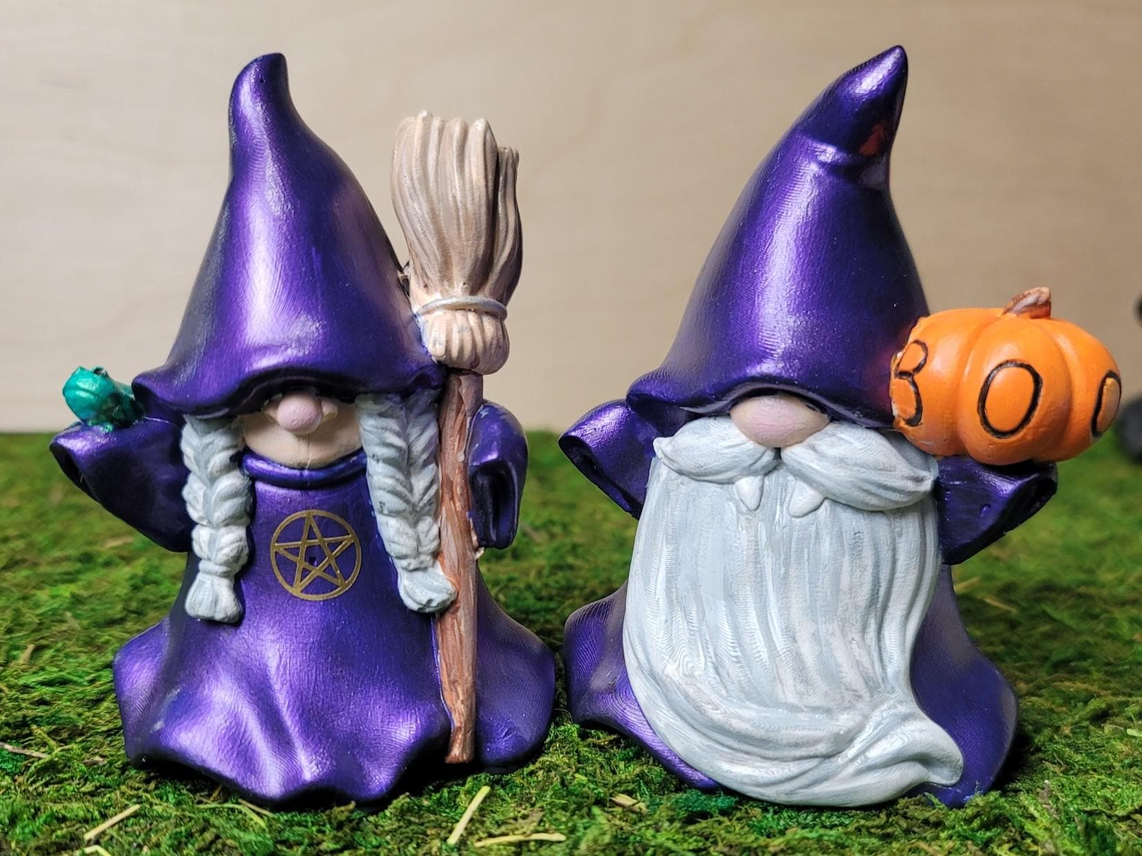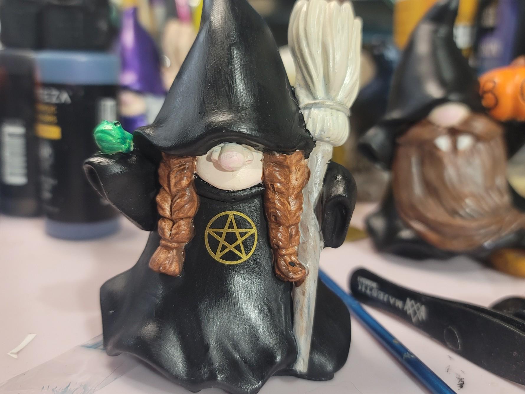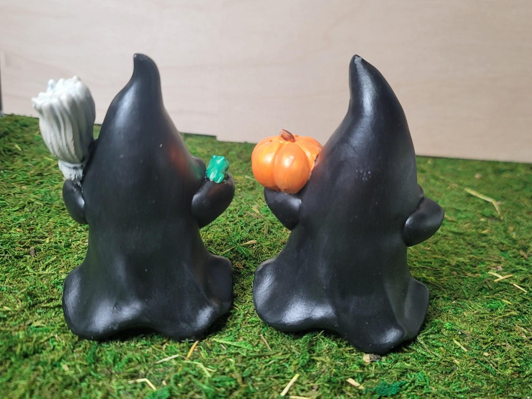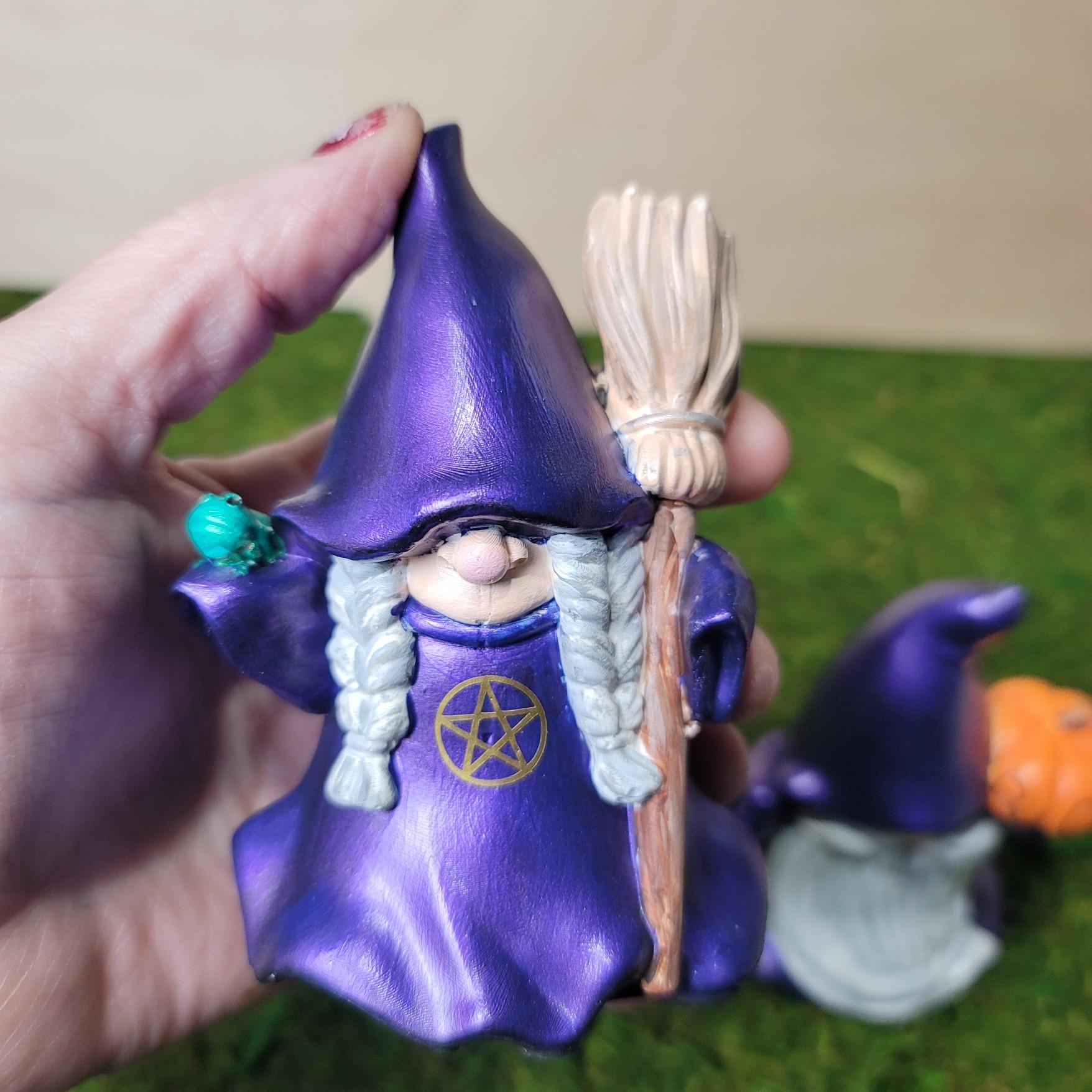 These fall gnomes can be made in any color you want. They are 4" tall and hand painted by me using an acrylic paint. Because they are all hand painted, they could vary slightly in appearance from the pictures. I use the same paint, but I do the broom, hair and beard in layers to add depth so no one statue will be identical. I hand paint a glossy sealer on them to make them easier to dust. if you need to clean them, DO NOT SOAK, but use a damp rag. if needed, a mild soap, like a dish soap, can be used.