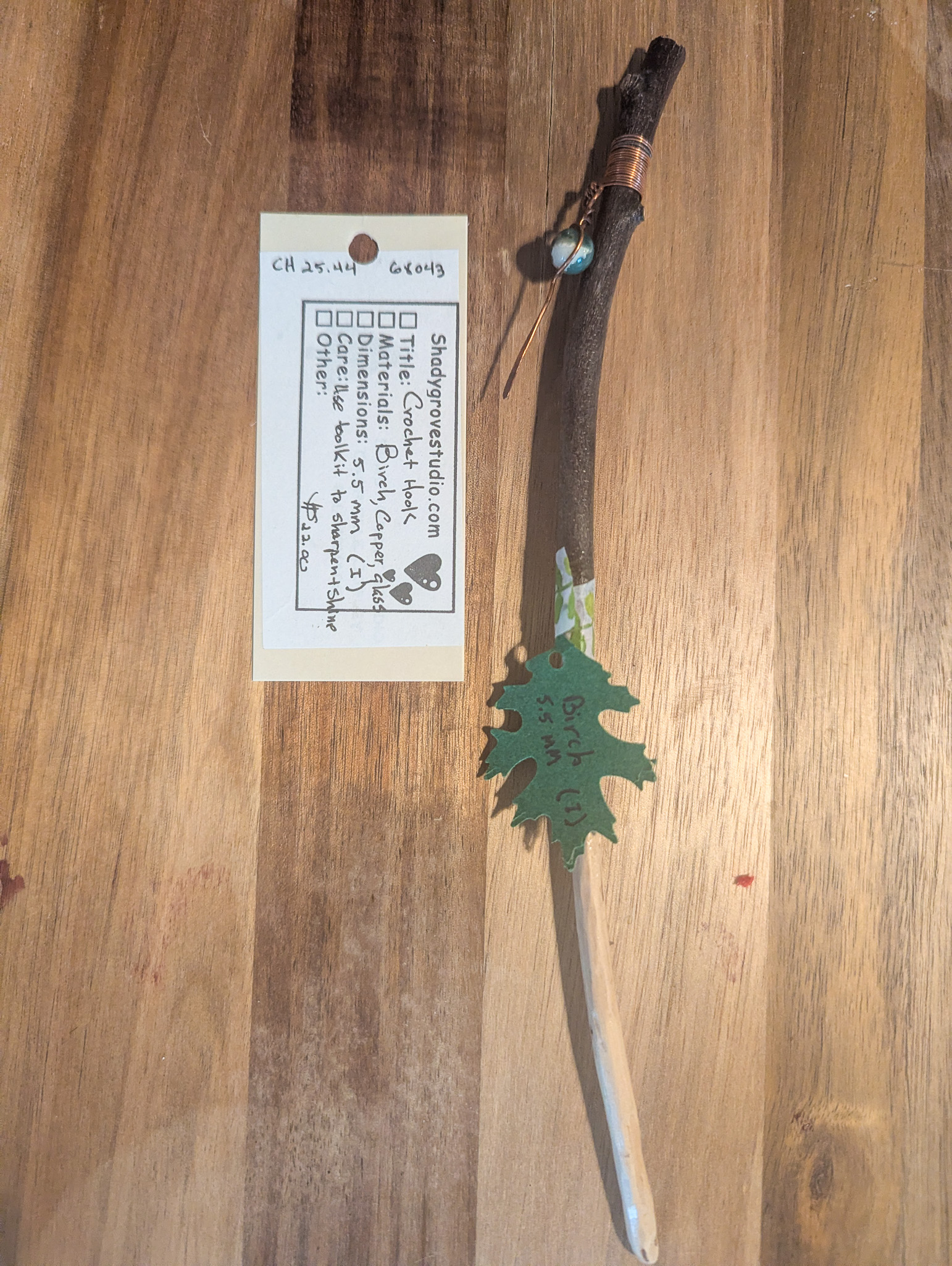 Hand Carved Crochet Hook: Birch size I (5.5 mm)