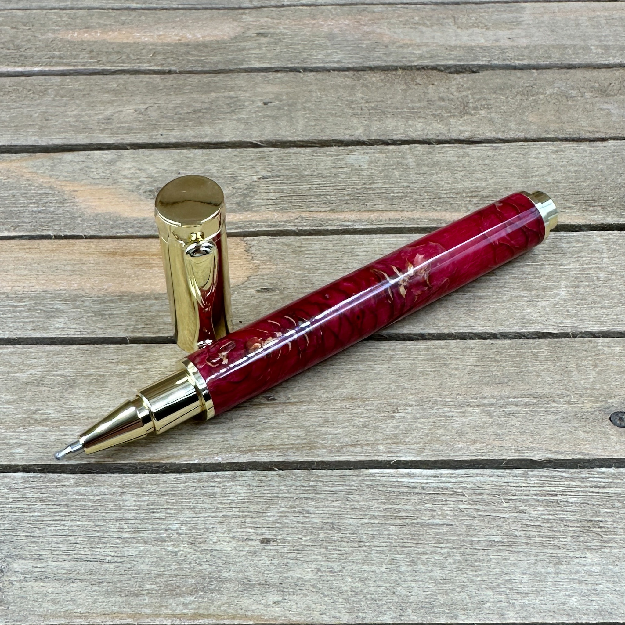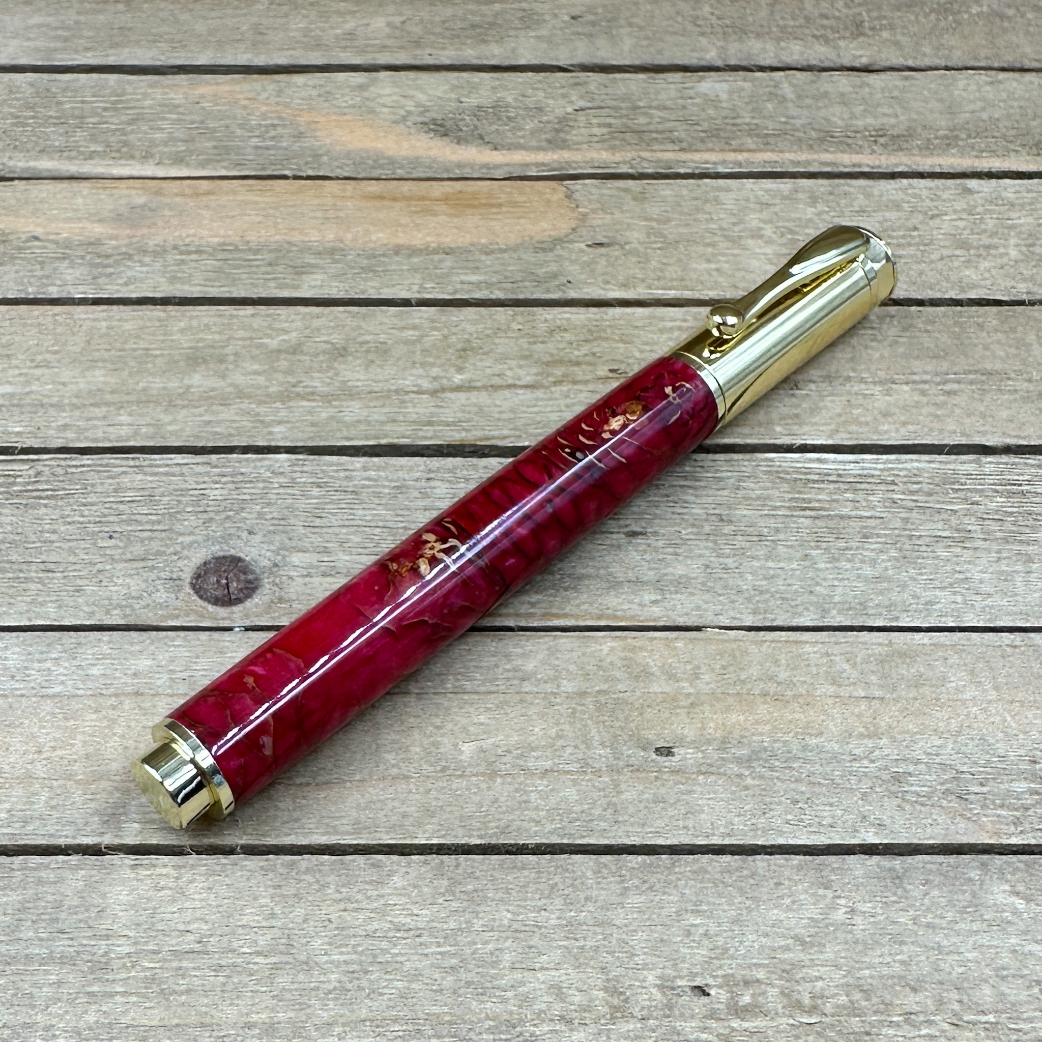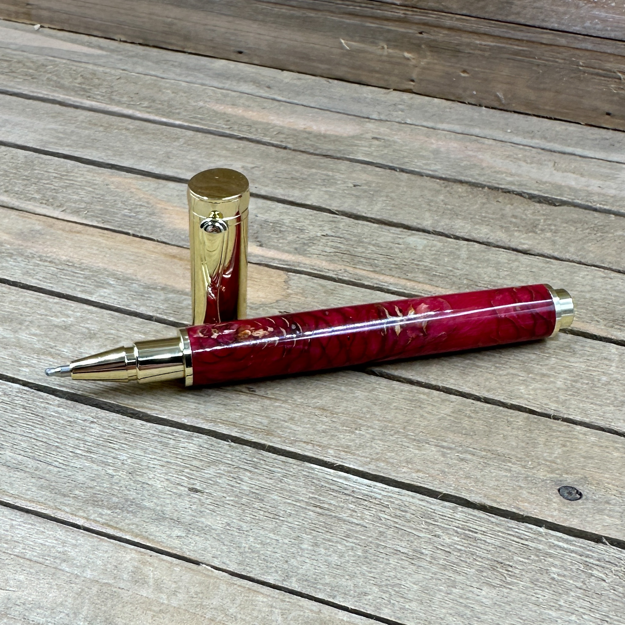This custom handmade pen, like all my other pens, was personally handcrafted by me in my woodshop. These are not mass produced pens and each one is handcrafted by myself so you are getting a craftsman's touch and the love of their craft with each pen. Each pen I craft has subtle differences making it a truly one of a kind pen. First, I harvest mini pinecones, dry them out, and cast them into a usable pen blank with epoxy resin. I use the created blank and match it with complimentary pen components. Second, I drill the cast blank to prep it for turning. Third, it is meticulously turned down with my lathe to fit the Zen pen components taking proper care that it transitions to the pen hardware perfectly. Finally, a gloss finish is applied and the pen is wet polished to a very high gloss. The polish gives the pen a lot of depth and really brings out the color. All of my pens have already been produced by me so you know you will be getting the pen pictured in the listing. This eliminates the guess work on how it will look like once made and my pens are ready to ship without long waiting times.