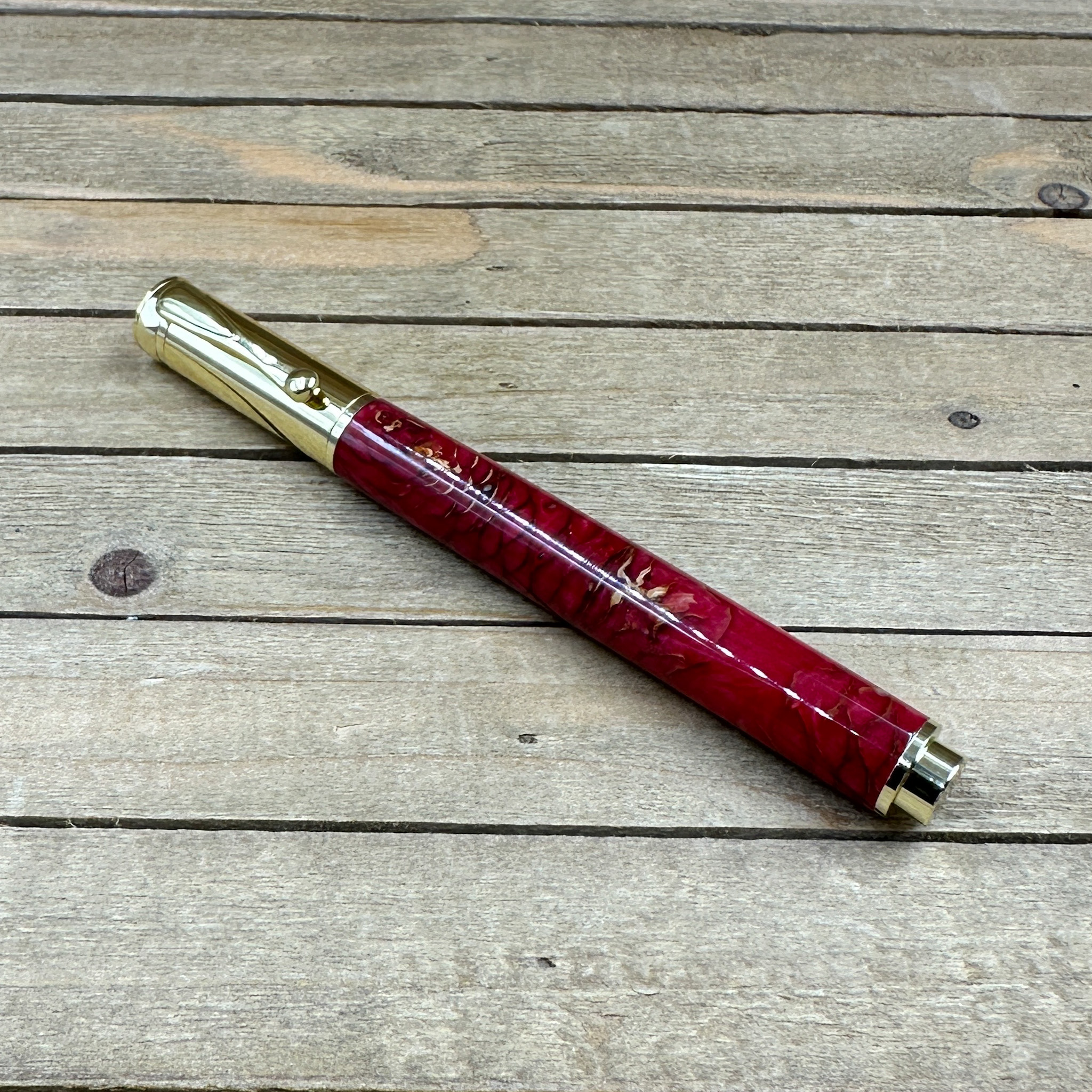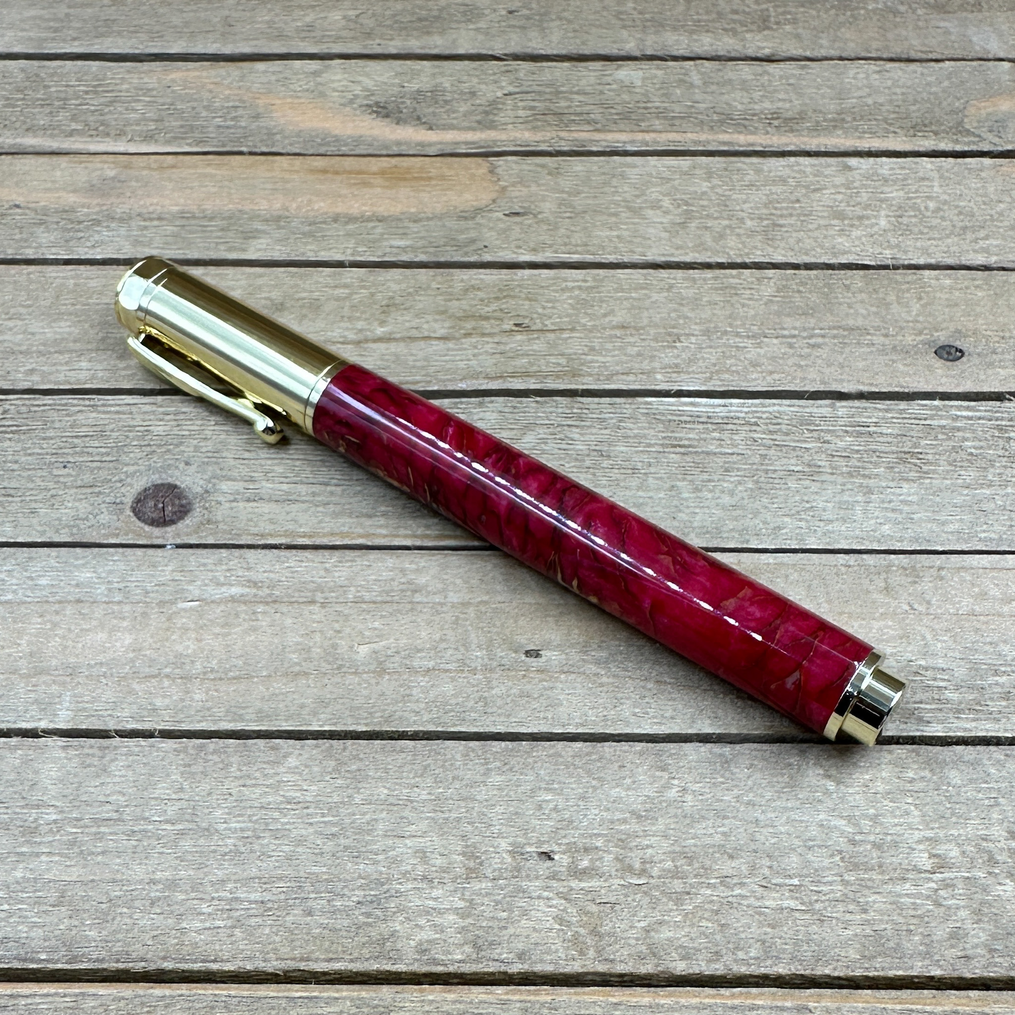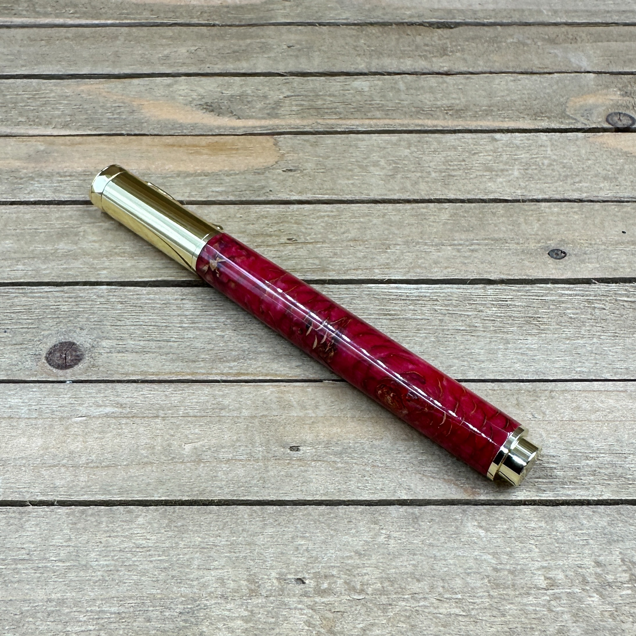 This custom handmade pen, like all my other pens, was personally handcrafted by me in my woodshop. These are not mass produced pens and each one is handcrafted by myself so you are getting a craftsman's touch and the love of their craft with each pen. Each pen I craft has subtle differences making it a truly one of a kind pen. First, I harvest mini pinecones, dry them out, and cast them into a usable pen blank with epoxy resin. I use the created blank and match it with complimentary pen components. Second, I drill the cast blank to prep it for turning. Third, it is meticulously turned down with my lathe to fit the Zen pen components taking proper care that it transitions to the pen hardware perfectly. Finally, a gloss finish is applied and the pen is wet polished to a very high gloss. The polish gives the pen a lot of depth and really brings out the color. All of my pens have already been produced by me so you know you will be getting the pen pictured in the listing. This eliminates the guess work on how it will look like once made and my pens are ready to ship without long waiting times.
