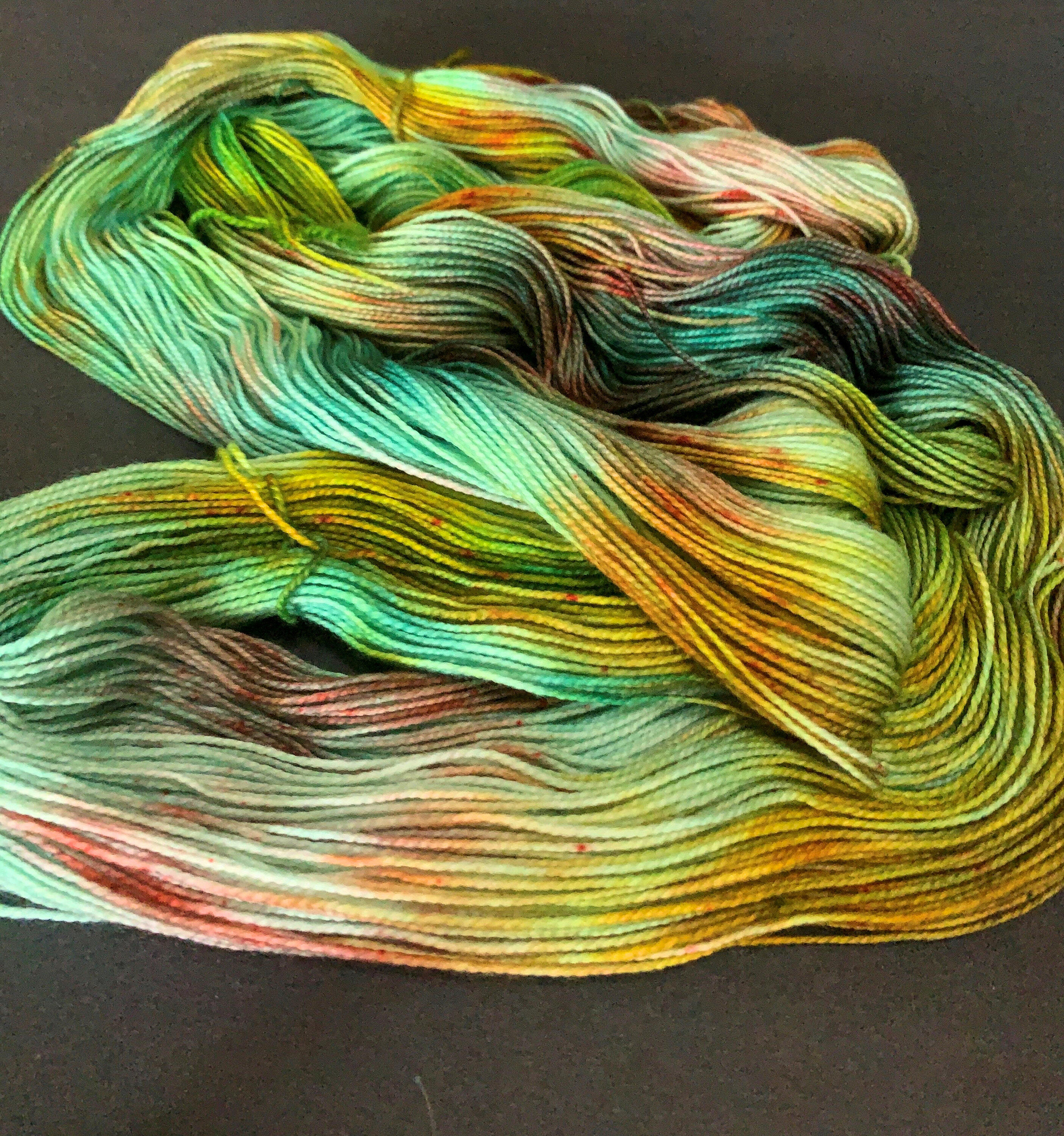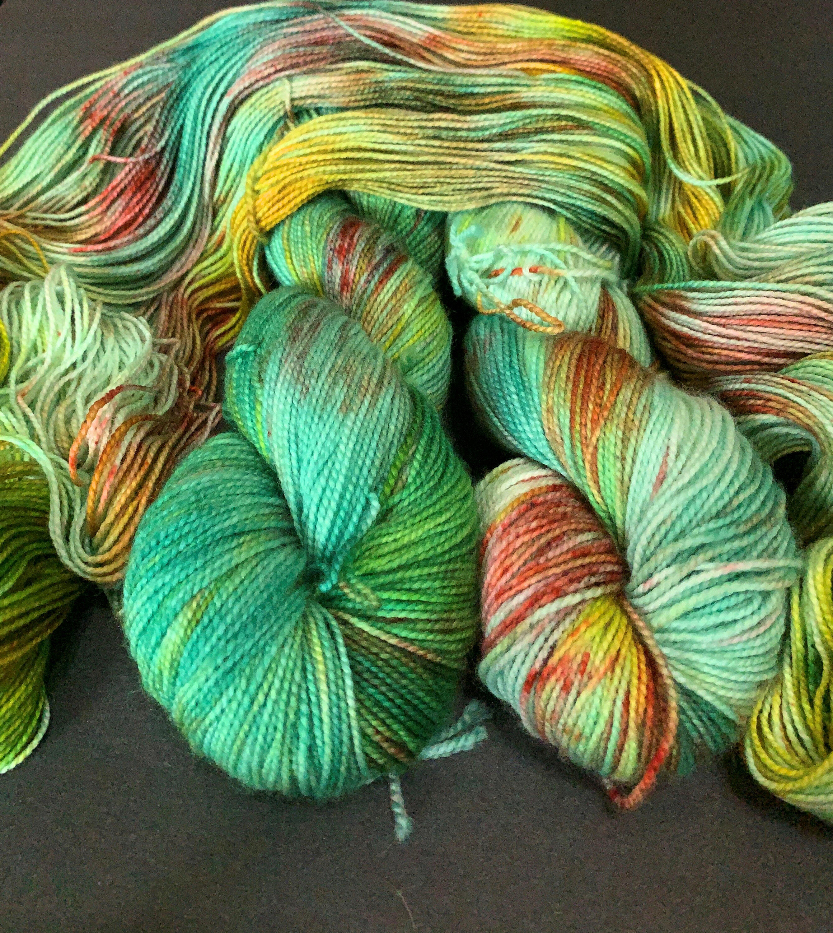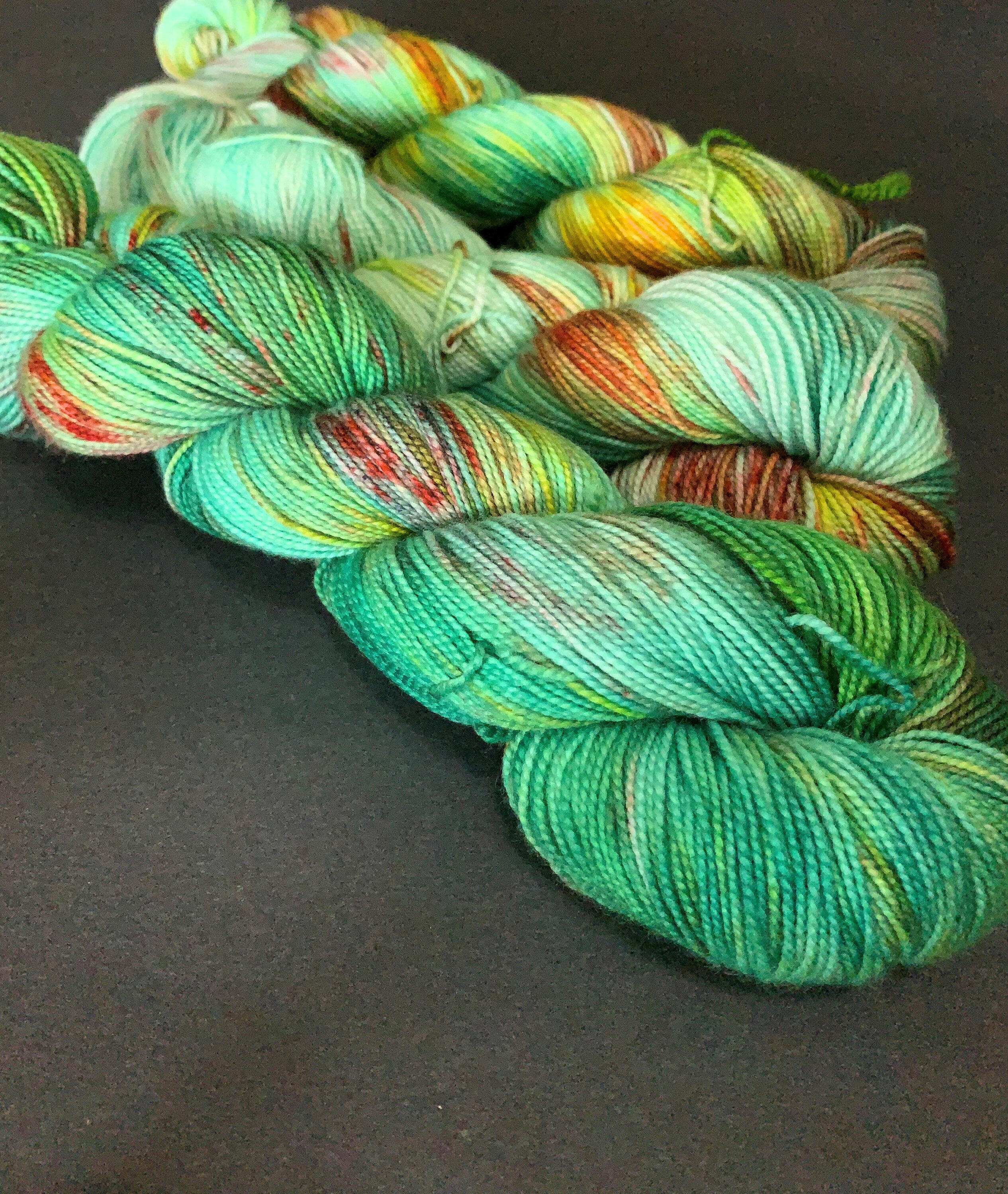 Dyeing Process: All my yarns are commercially-milled and hand-dyed by me in my tiny kitchen using acid dyes. I take great care in ensuring that my yarns are colorfast and that they are well-rinsed before shipping out, but it's possible to experience a little bit of bleeding during the first few washings as excess dye is rinsed out of the yarn. This can be influenced by the colors used (red and blue are common culprits) and by the hardness and temperature of your washing water. If the bleeding is excessive or persists after more than a few washings, let me know.