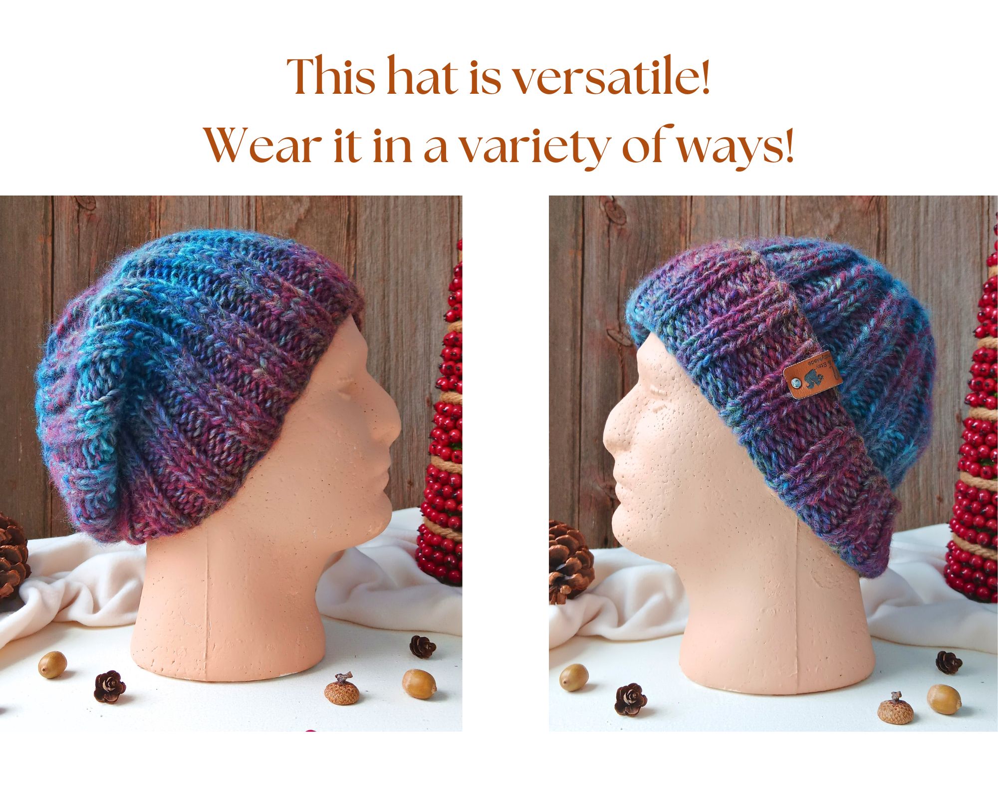 • Cheerful Natural Tones: Rustic ombre blue and purple yarn brings a woodland inspired charm that brightens winter days.