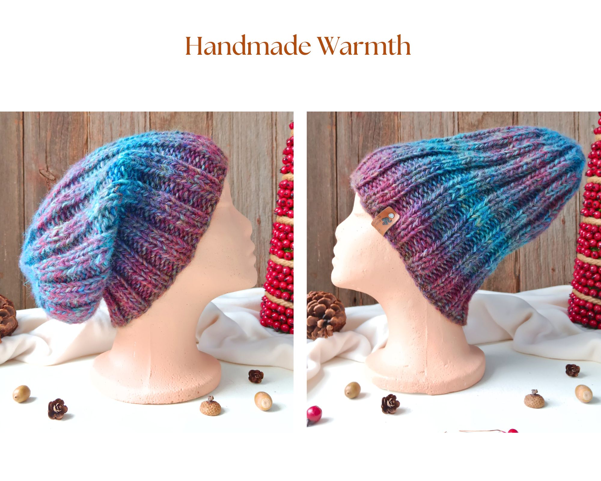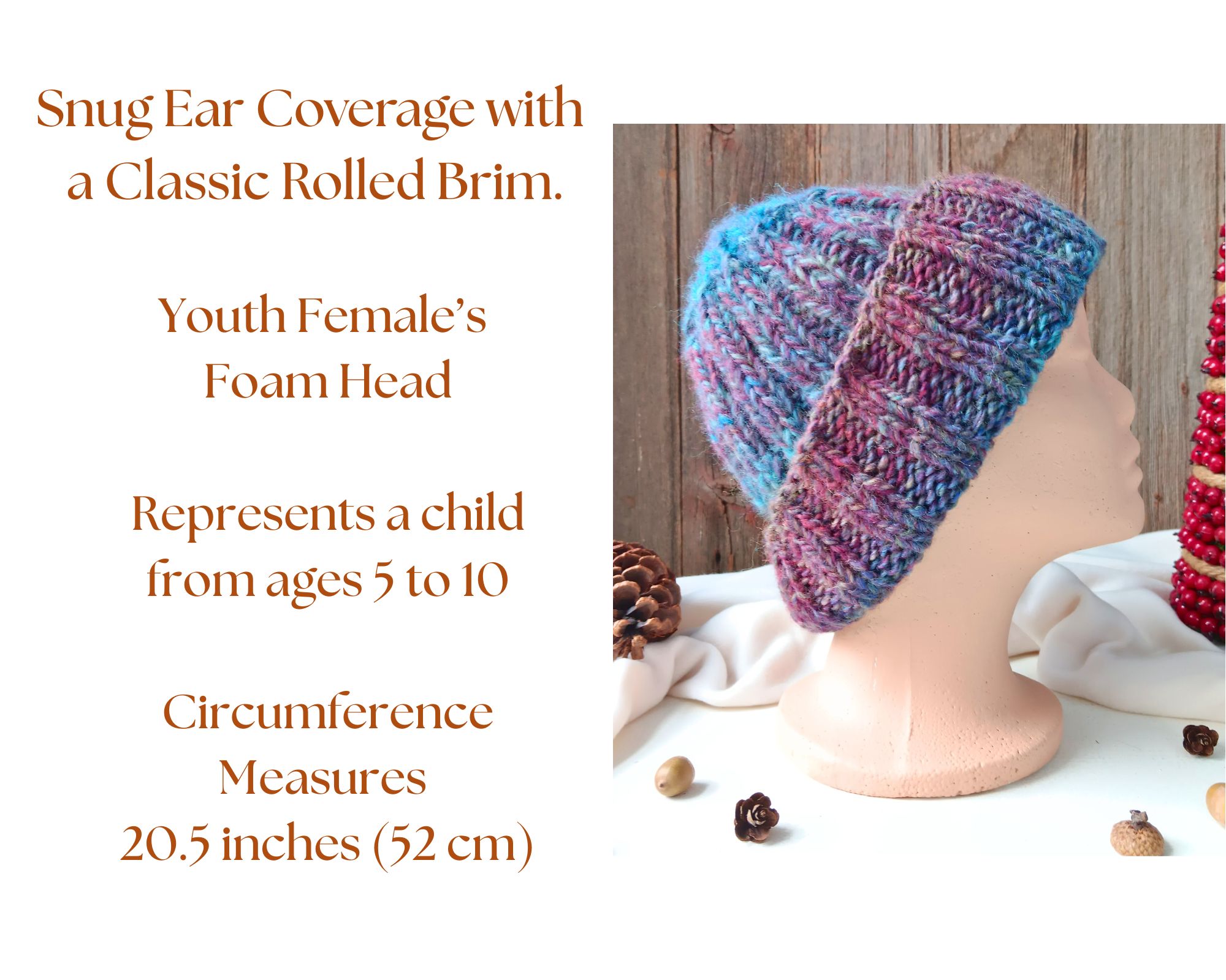 Whether worn slouchy or cuffed, this hand-knit youth hat adds cozy warmth and handmade charm to any cold weather outfit — a timeless winter accessory made to be worn, loved, and passed along.