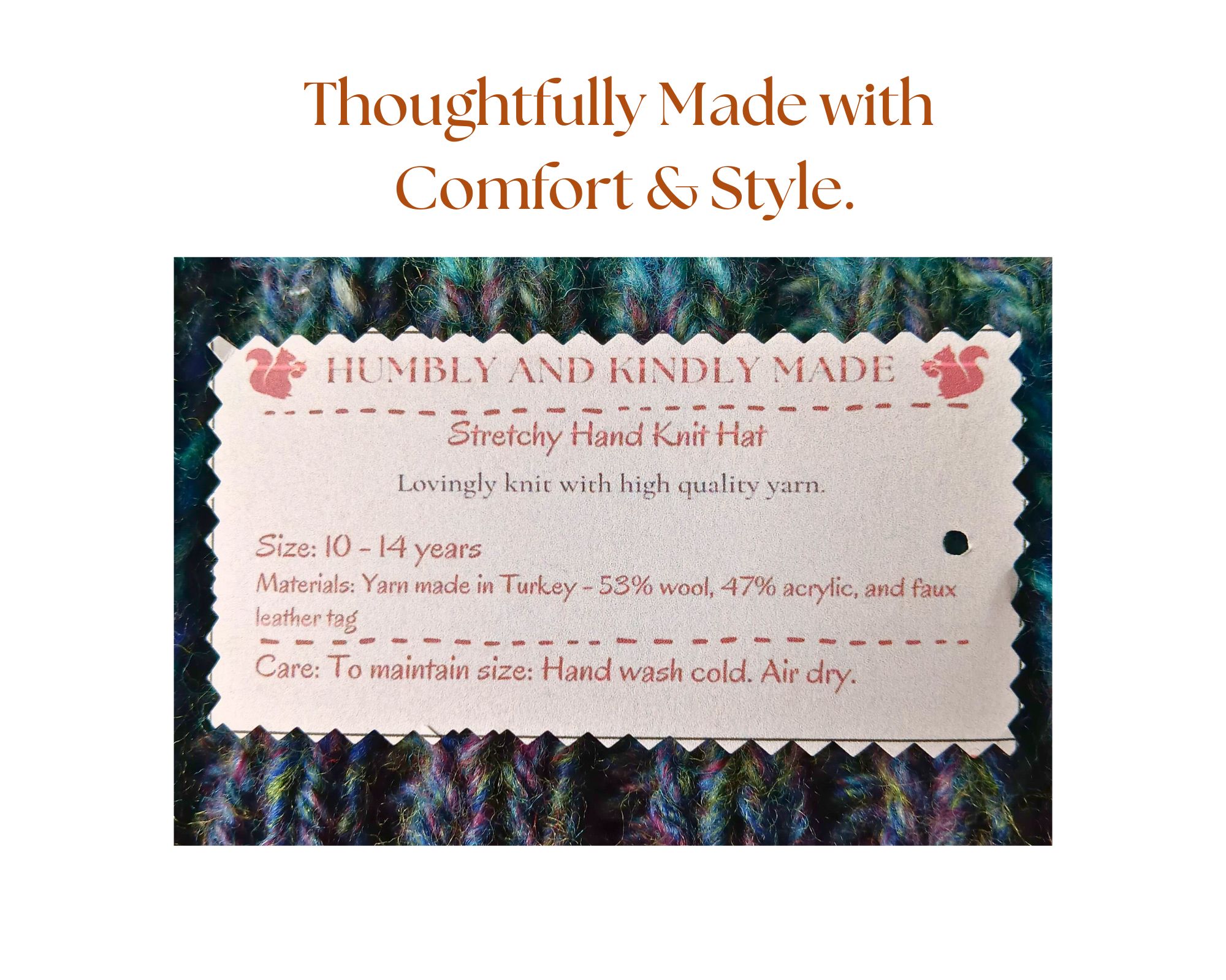 Hand Knit Winter Hat for Kids Ages 10 to 14 — Warm, Stretchy, and Made with Care