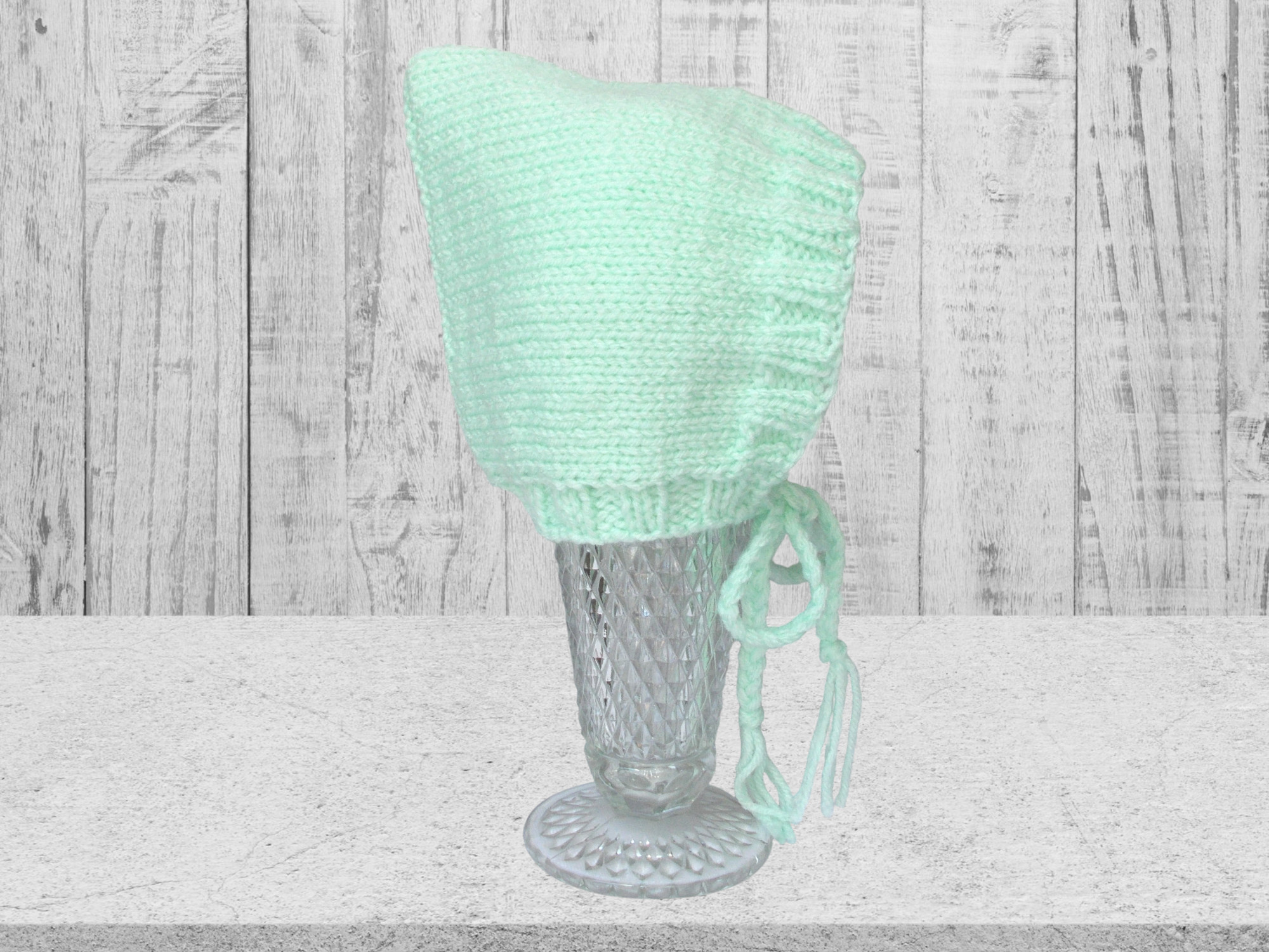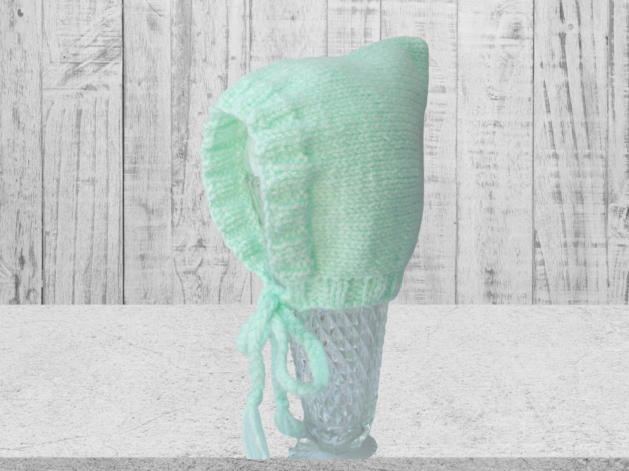 Knit in a soft mint color acrylic yarn - Ties are 12" long including tassels