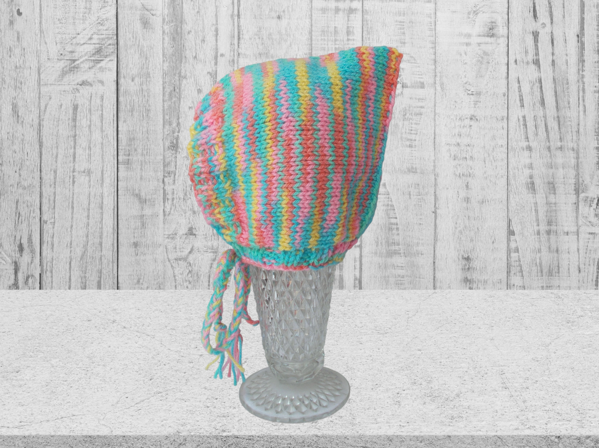 Knit in a mix of soft cotton candy colors - Ties are 13" long including tassels