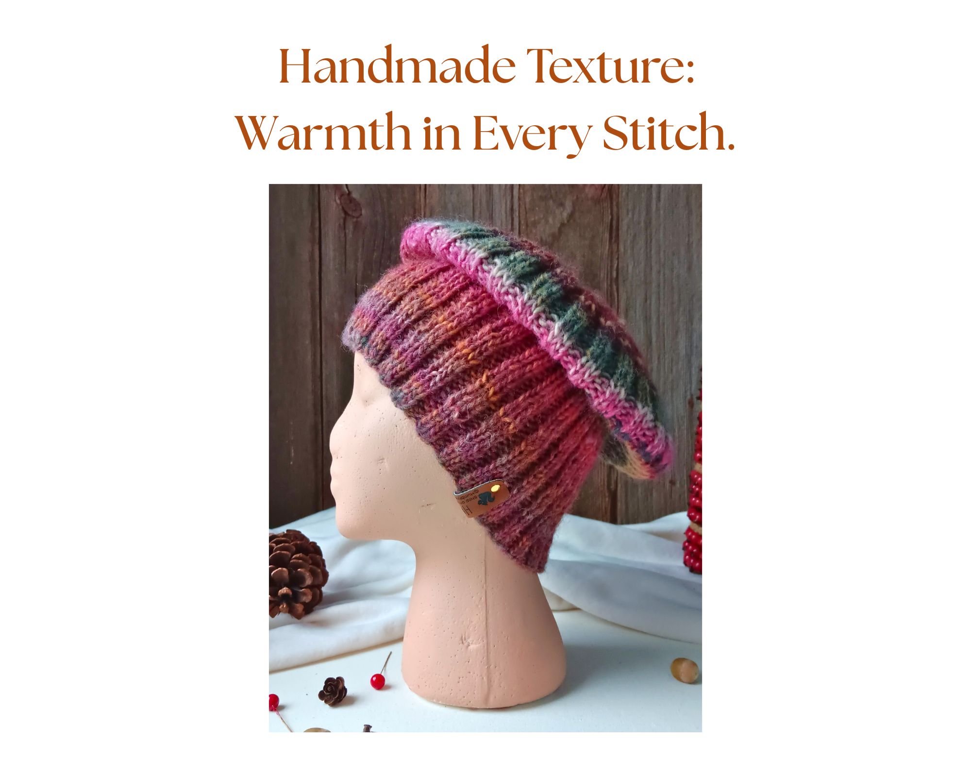 • Hand Knit & Stretchy Fit: Designed for comfort, this beanie offers a snug yet flexible fit that holds its shape beautifully.