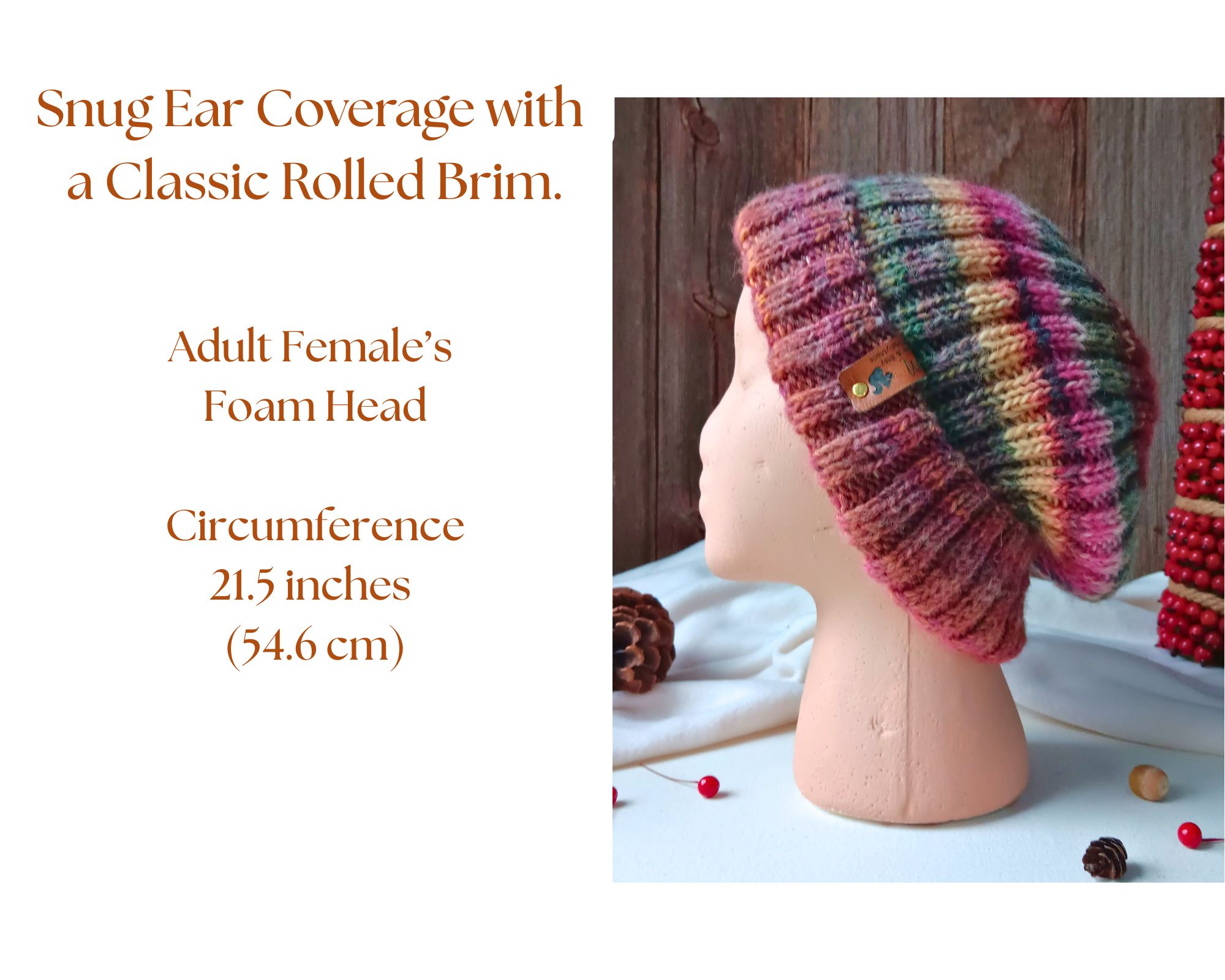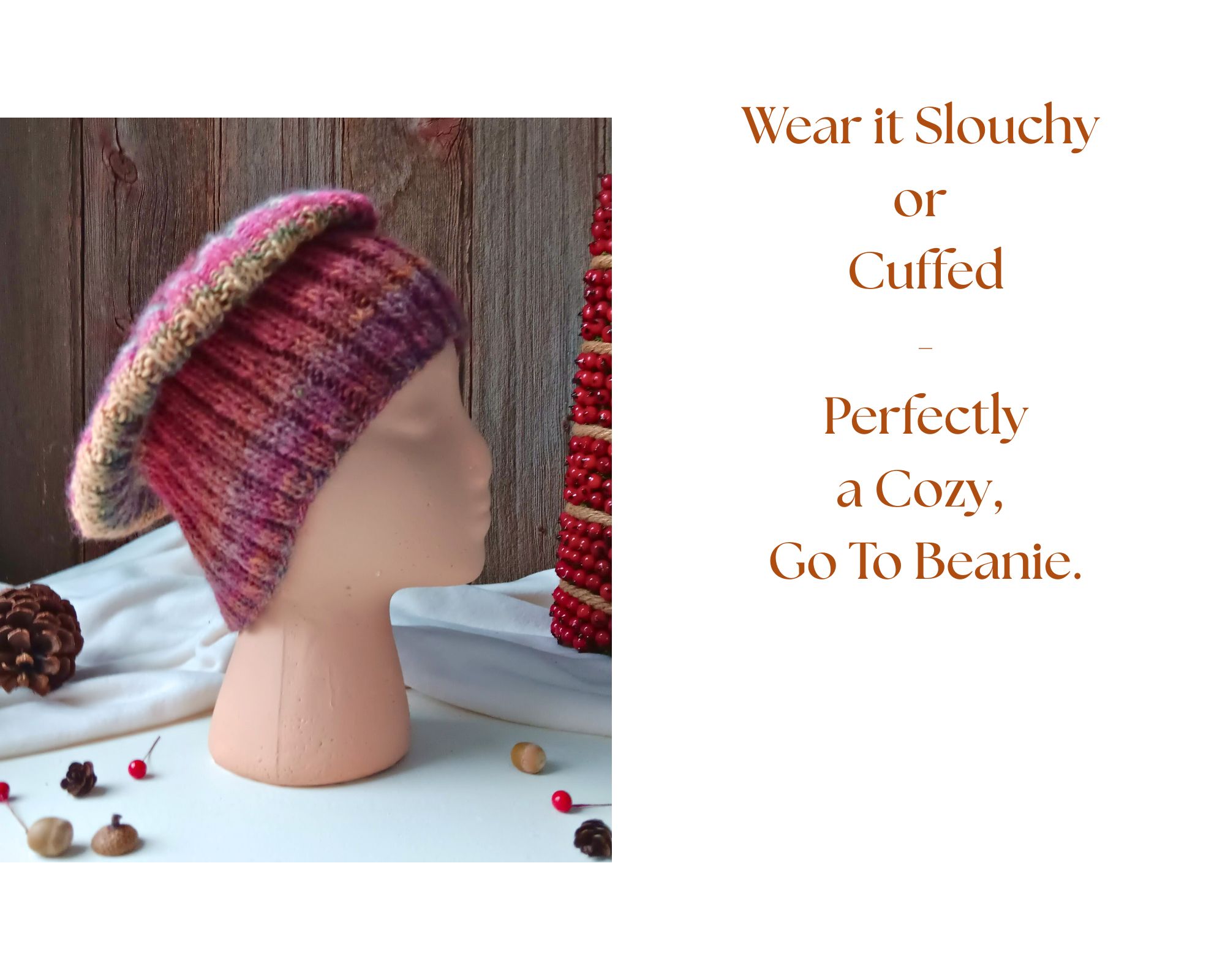 Whether worn slouchy or cuffed, this hand knit hat adds a touch of warmth and artistry to any cold weather outfit — a timeless, unisex piece made to be worn and loved for years to come.
