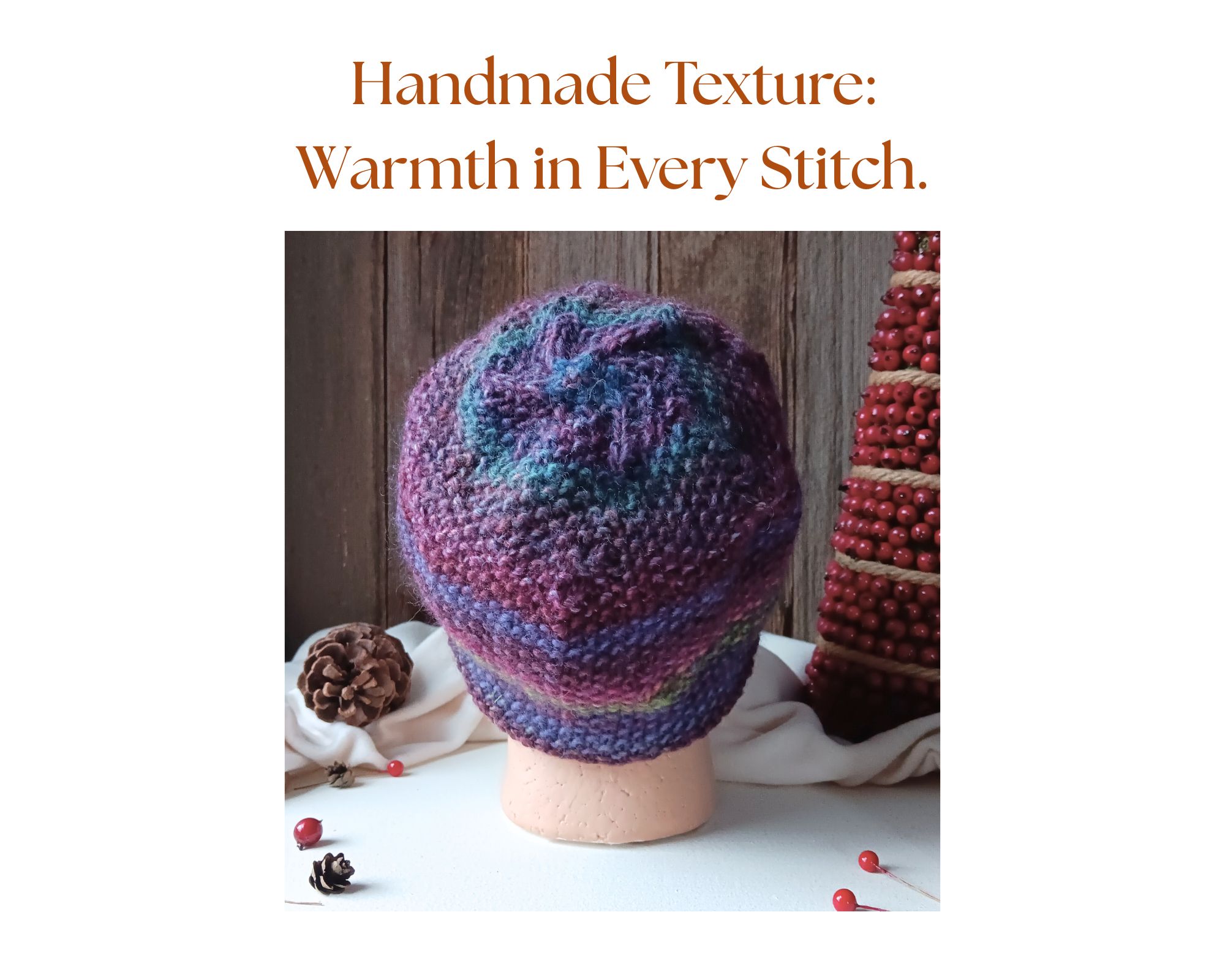 • Hand-Knit & Stretchy Fit: Designed for comfort, this beanie offers a snug yet flexible fit that holds its shape beautifully.