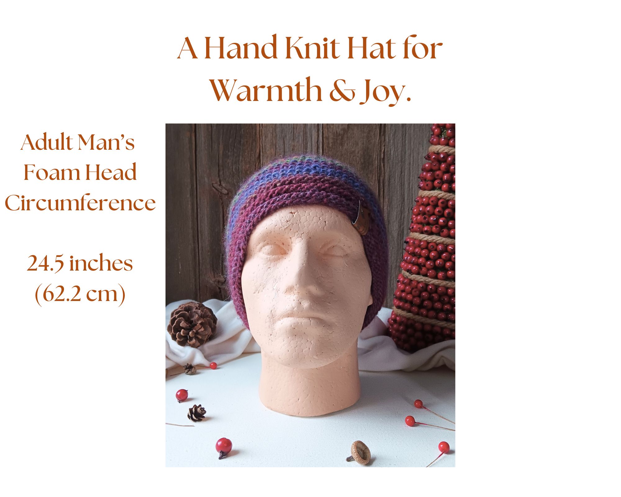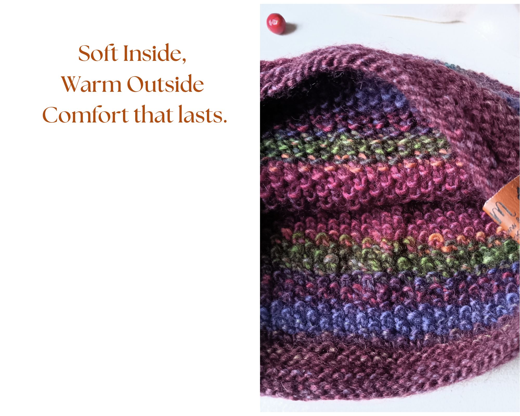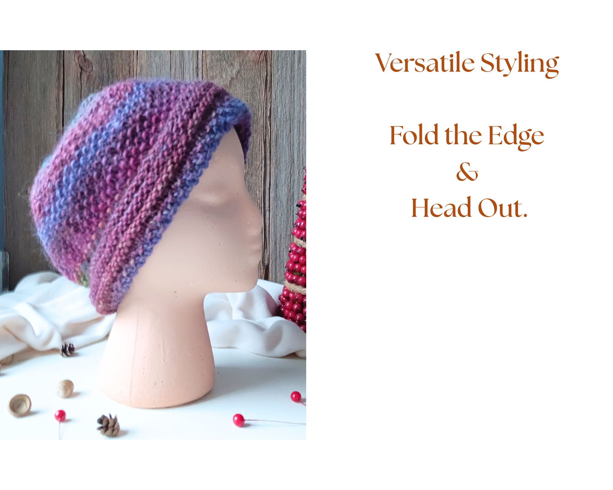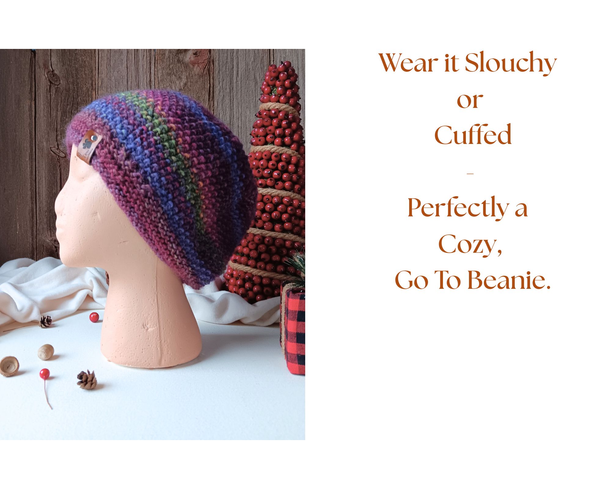 Whether worn slouchy or cuffed, this hand-knit hat adds a touch of warmth and artistry to any cold-weather outfit — a timeless, unisex piece made to be worn and loved for years to come.