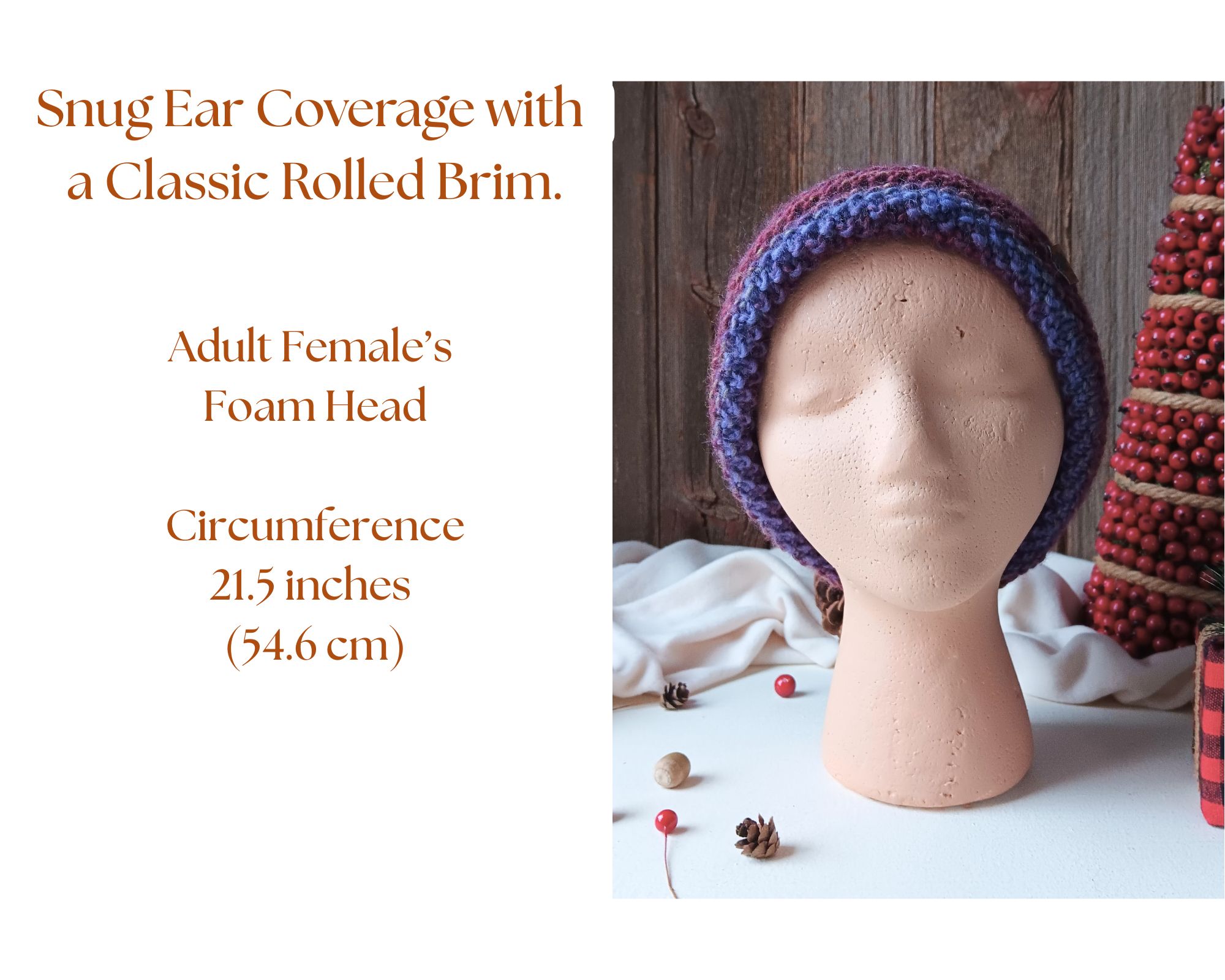This plum and purple wool-blend hat brings cozy warmth to chilly days.