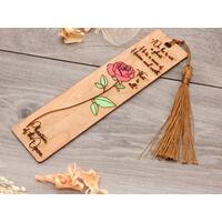 After the original design is sketched and digitally drawn. I laser etch the designs into 3mm hardwood sheets and cut out the bookmarks from these sheets. After the designs are laser etched & cut, the wood is cleaned, the design is hand painted using oil-based paint and sealed with acrylic sealer to protect the painting and wood. After that, the tassel is added and the bookmark is ready for its new home!
