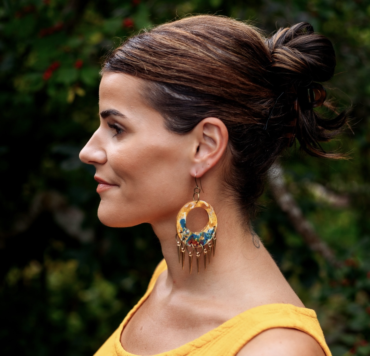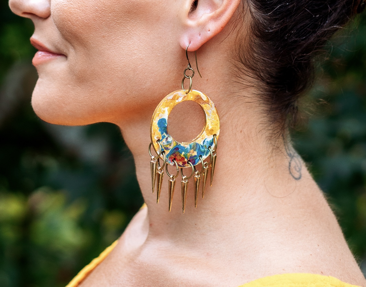 This unique pair of wooden earrings is truly one of a kind! When painting these hoops, I drew inspiration from my love for paint pouring. If you love statement jewelry, then these are the earrings for you!