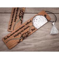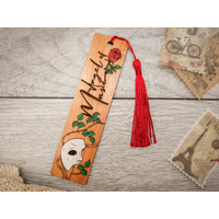 After the original design is sketched and digitally drawn. I laser etch the designs into 3mm hardwood sheets and cut out the bookmarks from these sheets. After the designs are laser etched & cut, the wood is cleaned, the design is hand painted using oil-based paint and sealed with acrylic sealer to protect the painting and wood. After that, the tassel is added, and the bookmark is ready for its new home!