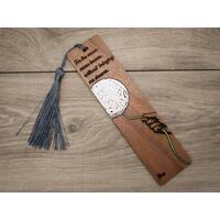 Crafted with the utmost care, this bookmark is made from cherry wood, giving it an elegant feel. Each piece is carefully hand-painted with oil-based paints, bringing the striking quote to life with vivid color. The bookmark is finished with a shiny bronze tassel, adding a touch of sophistication and refinement.