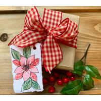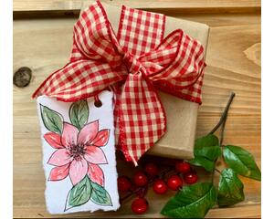 This set includes SIX (6) hand-painted watercolor gift tags in 6 designs: Wreath, lights, stocking, potted tree, poinsettia, pinecones. As they are each hand-painted, designs may vary slightly in size, shape, and color. They will come with a hole punched and red and white baker's twine for tying to your gift.