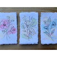 Please remember that my items are created with watercolor paints and ink, and as such are vulnerable to moisture and sunlight. I will package them to protect the items during shipping, but once they are in your hands, please avoid both water and direct sunlight to avoid damage to your art.