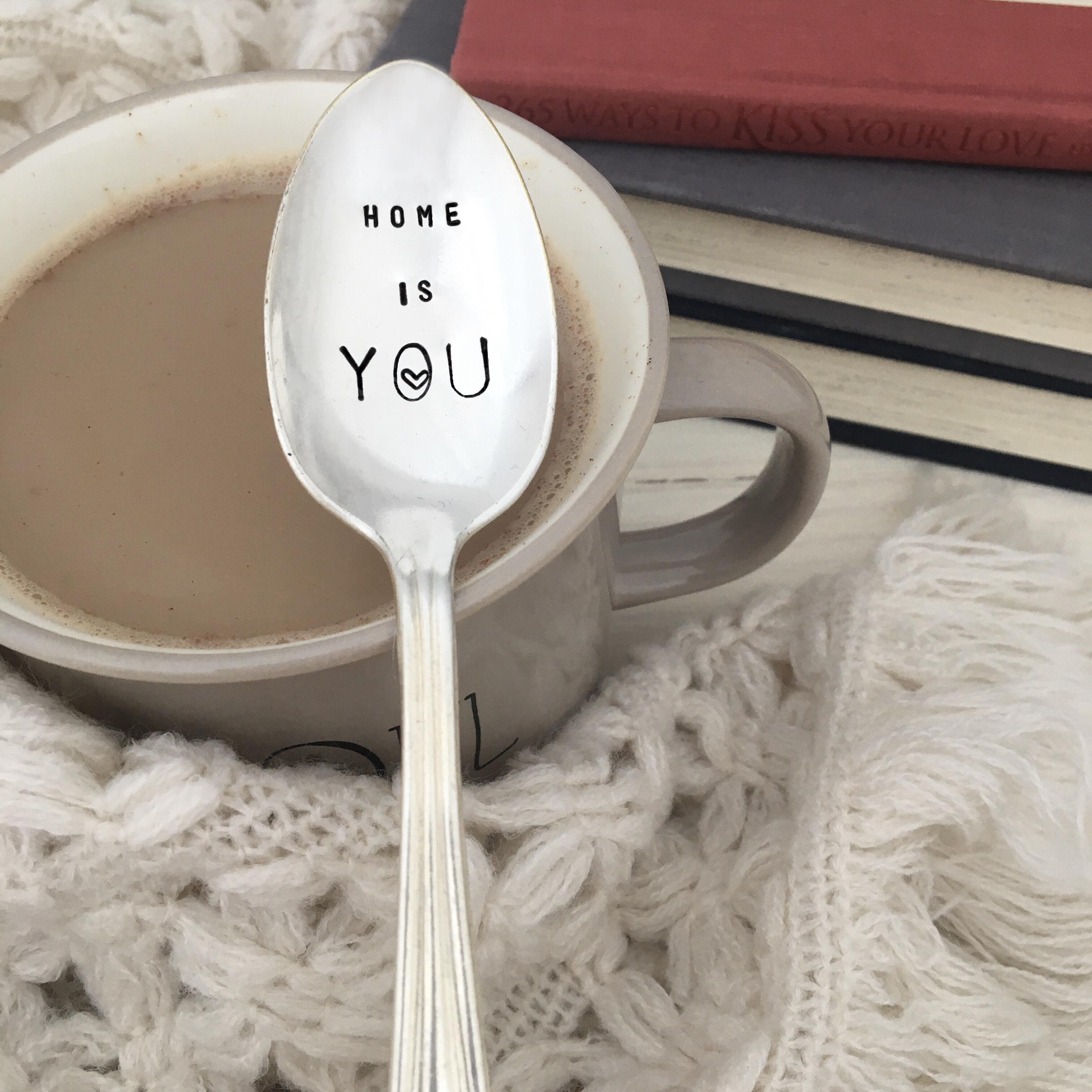 An antique silver spoon, hand stamped with the sentiment " Home is You". This heirloom spoon is a wonderful reminder each morning of the very special place they hold in your heart :)