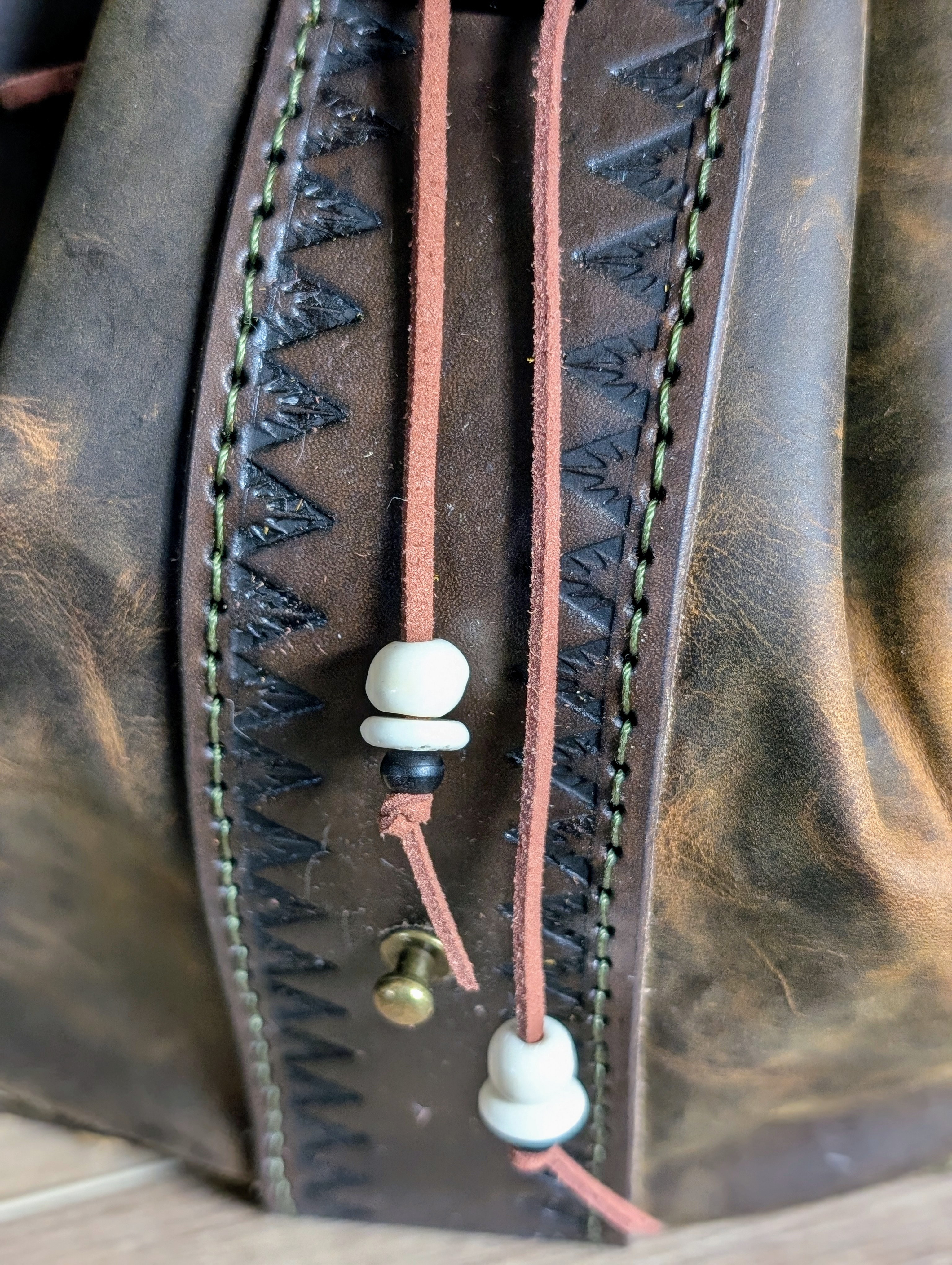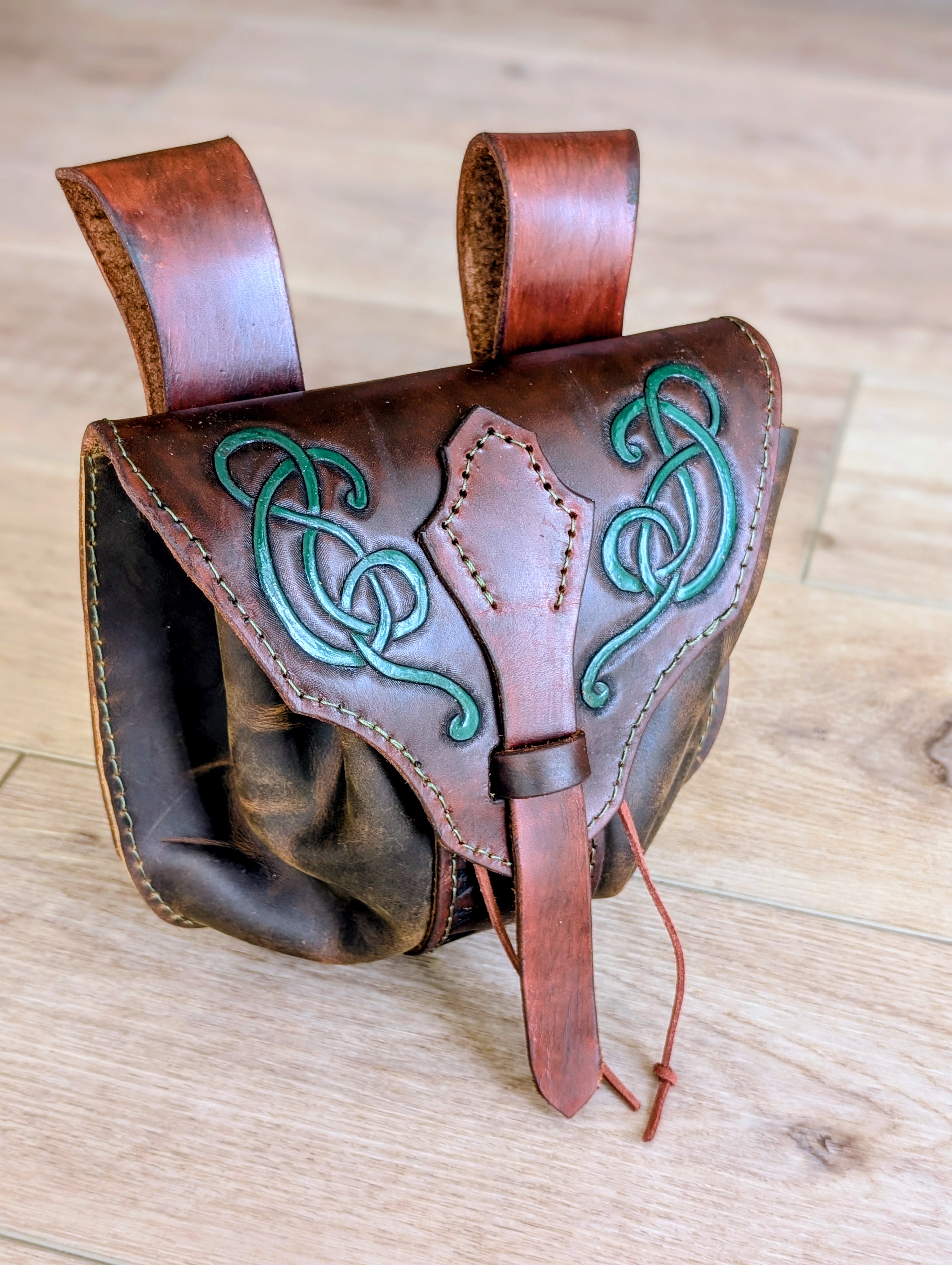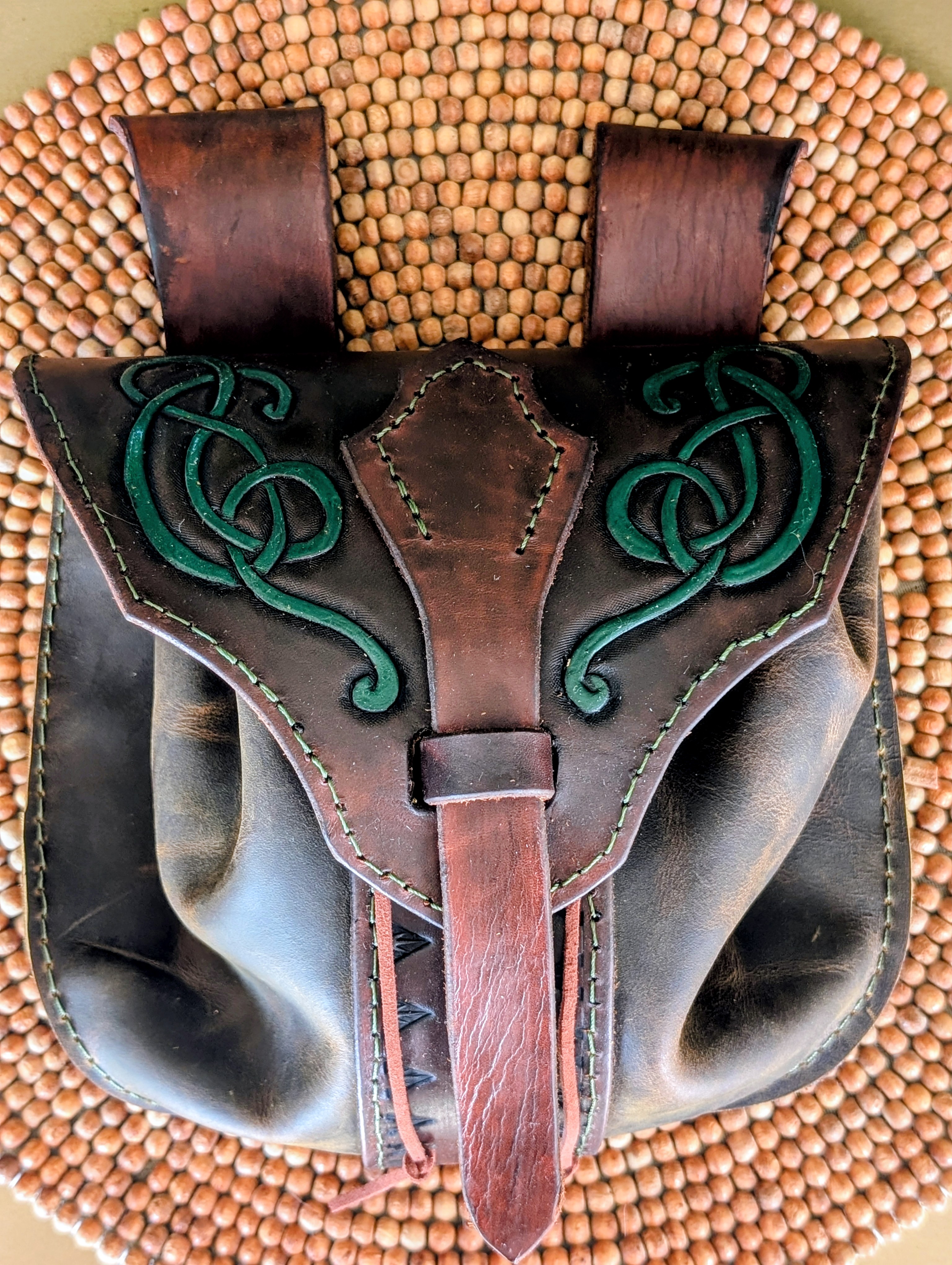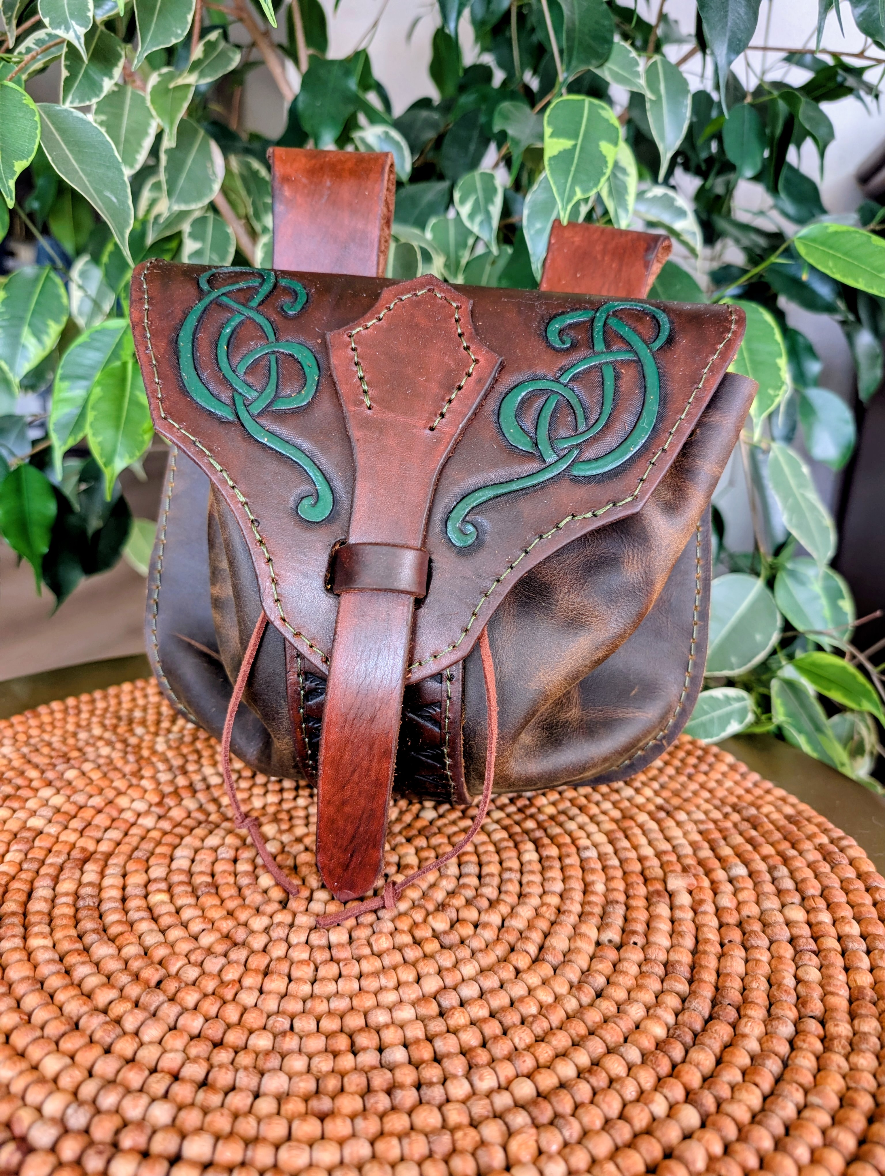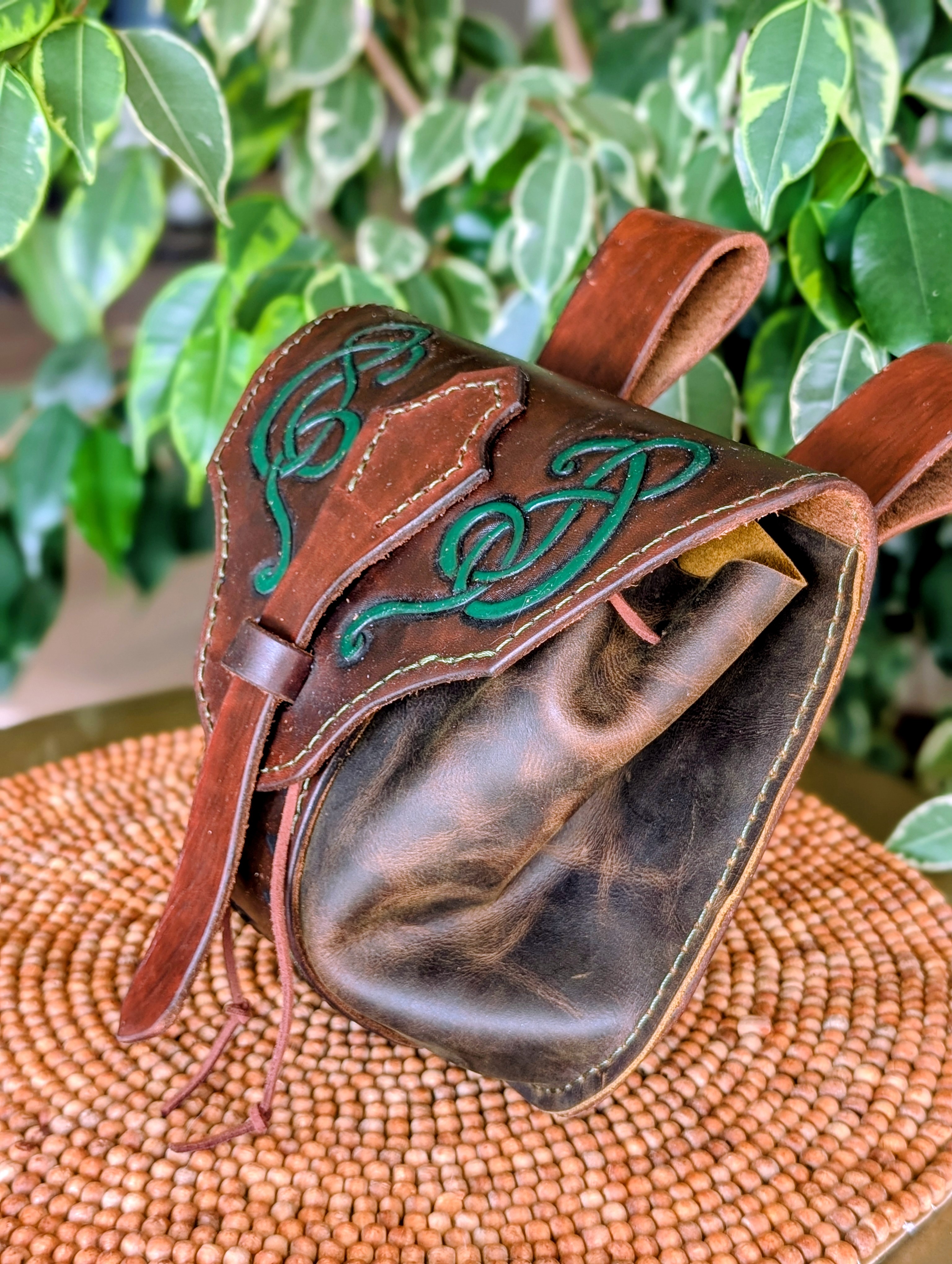 Crafted from premium leather (oil tan and veg tan), this bag was hand cut, carved, dyed and sewn with care and attention to detail to ensure uniqueness and quality. Artwork was designed by DarkHorse workshop. Holds a ton and great for a festival. Also a great costume piece, whether you're delving into the realms of LARP, Cosplay, or attending medieval, renaissance, or fantasy events, these bracers will complete your ensemble with style. Perfect for a faerie, druid, witch, or ranger costume.
