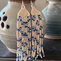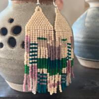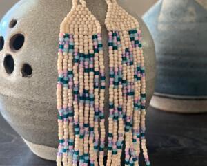 Every tiny glass seed bead is woven together one by one by hand, off the loom to from a unique pair of earrings.