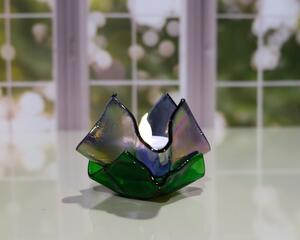 Our plates and bowls are made by cutting glass pieces then arranging into a pattern or design then placing in a kiln and heated until the glass melts (fuses) into a solid piece of glass. The process takes about 18 hours as the temperatures need to be controlled. Them the solid piece of glass is place on a ceramic mold and fired in the kiln again for about 15 hours as it goes through the controlled process