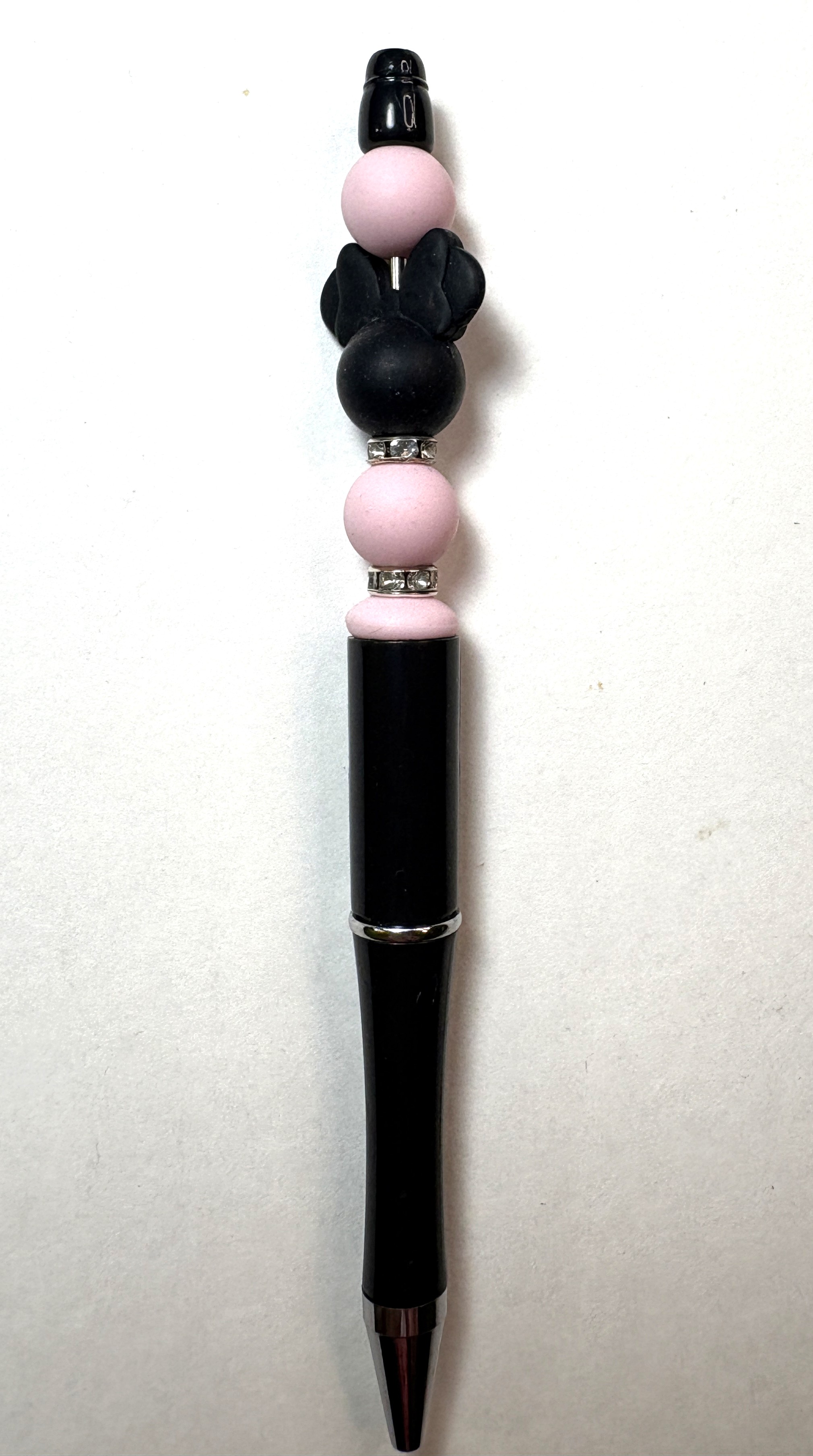 "Get ready to write with a smile! This handcrafted Mickey Mouse pen is a playful blend of classic and contemporary design. The black and pink color combination is sure to turn heads."