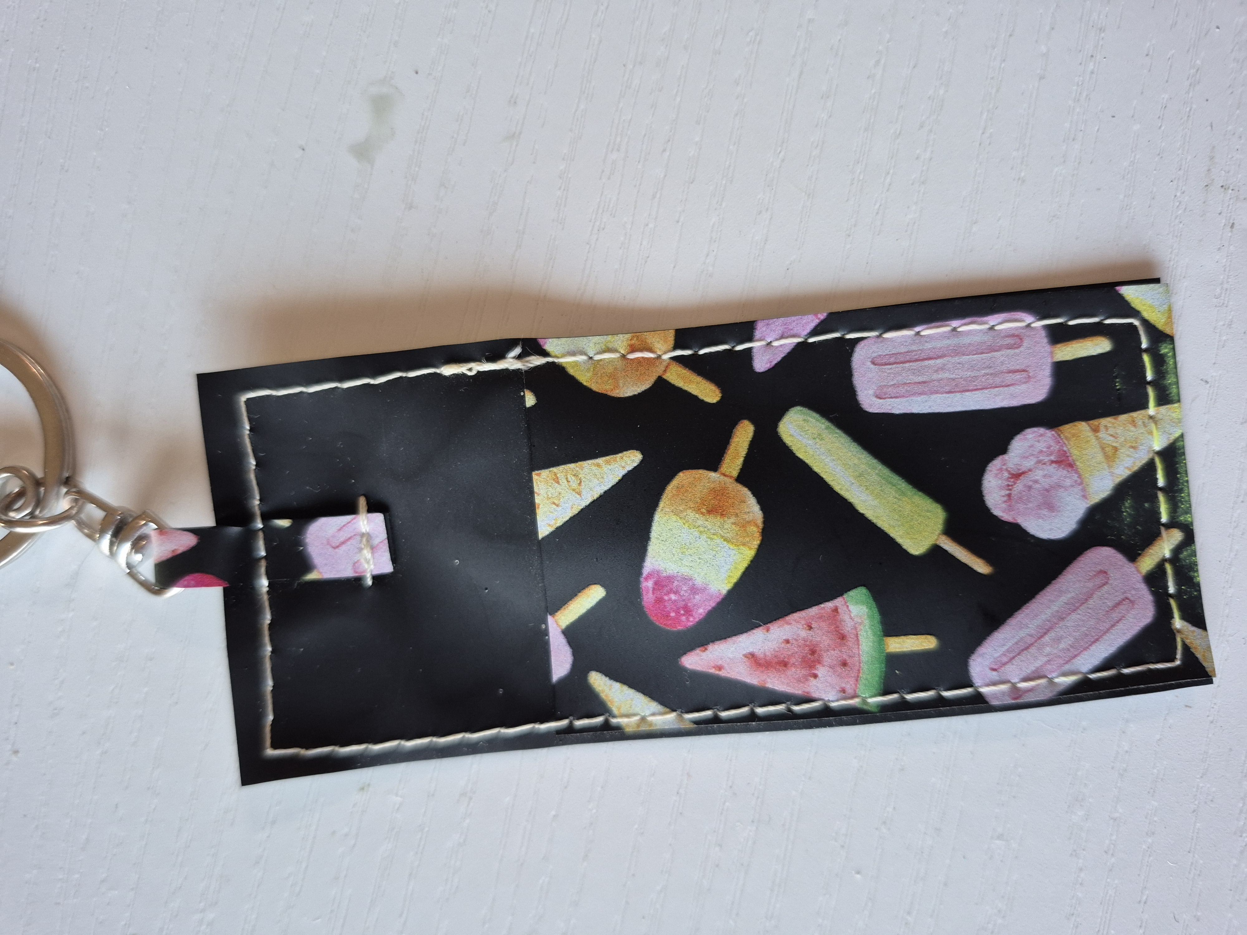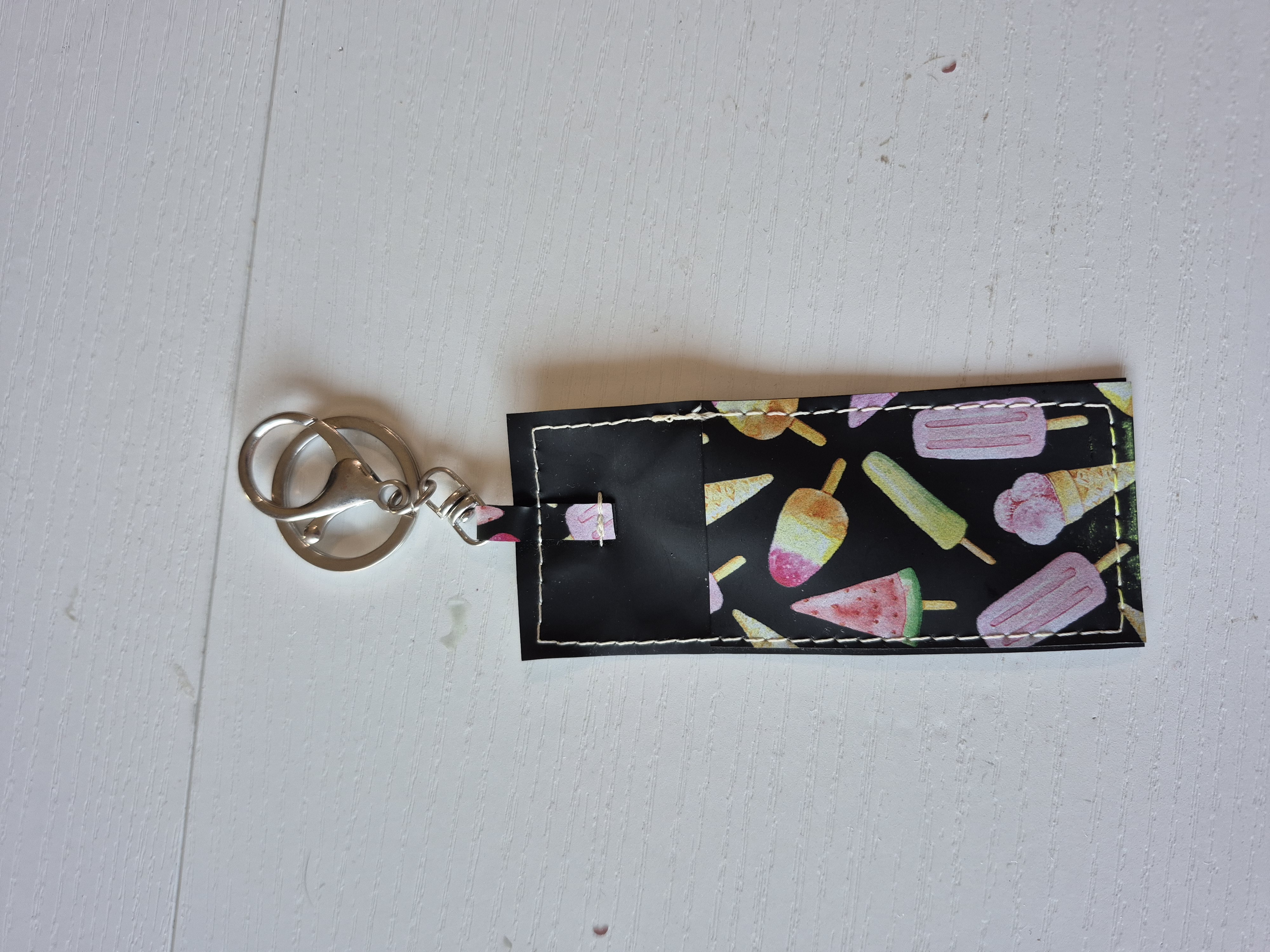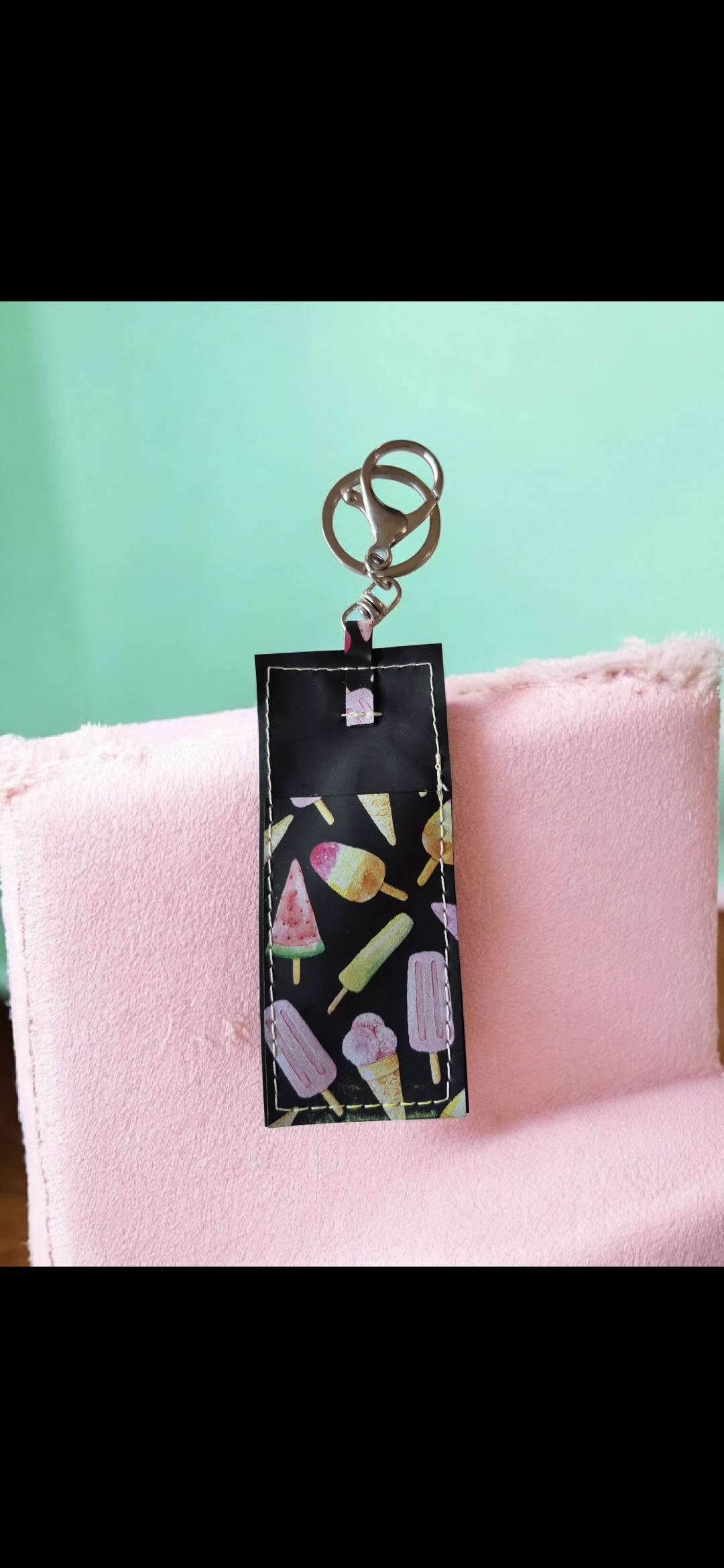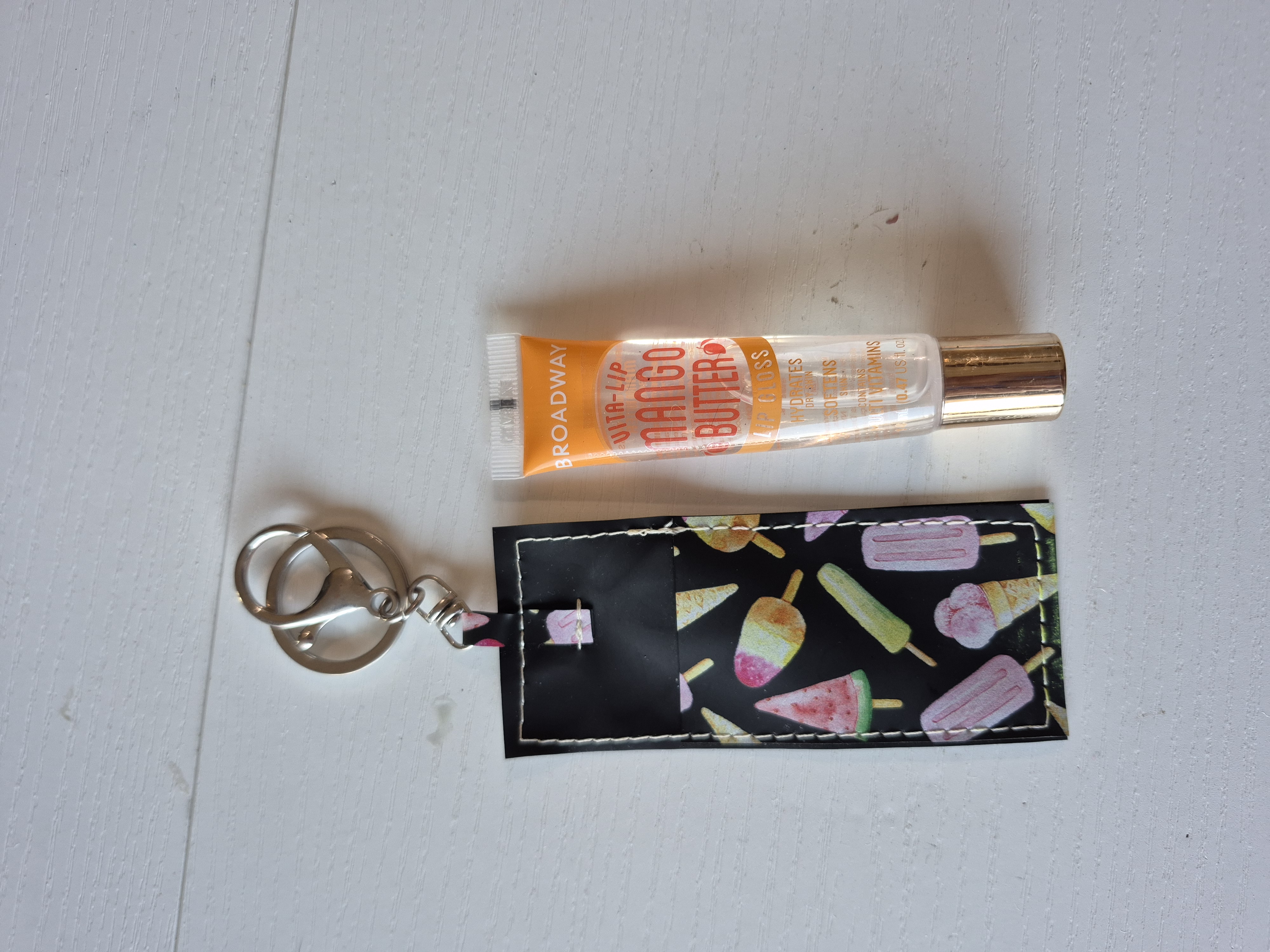 Keep your essentials right where you need them with our handcrafted "Sweet Treats" holder. This custom-made accessory is the perfect snug fit for your favorite lighter or a standard tube of gloss. Designed with a whimsical, dessert-inspired charm, it comes equipped with a sturdy lobster clasp and split ring at the top—easily clip it to your backpack, purse, car keys, or belt loop so you're never hunting for your gloss again.